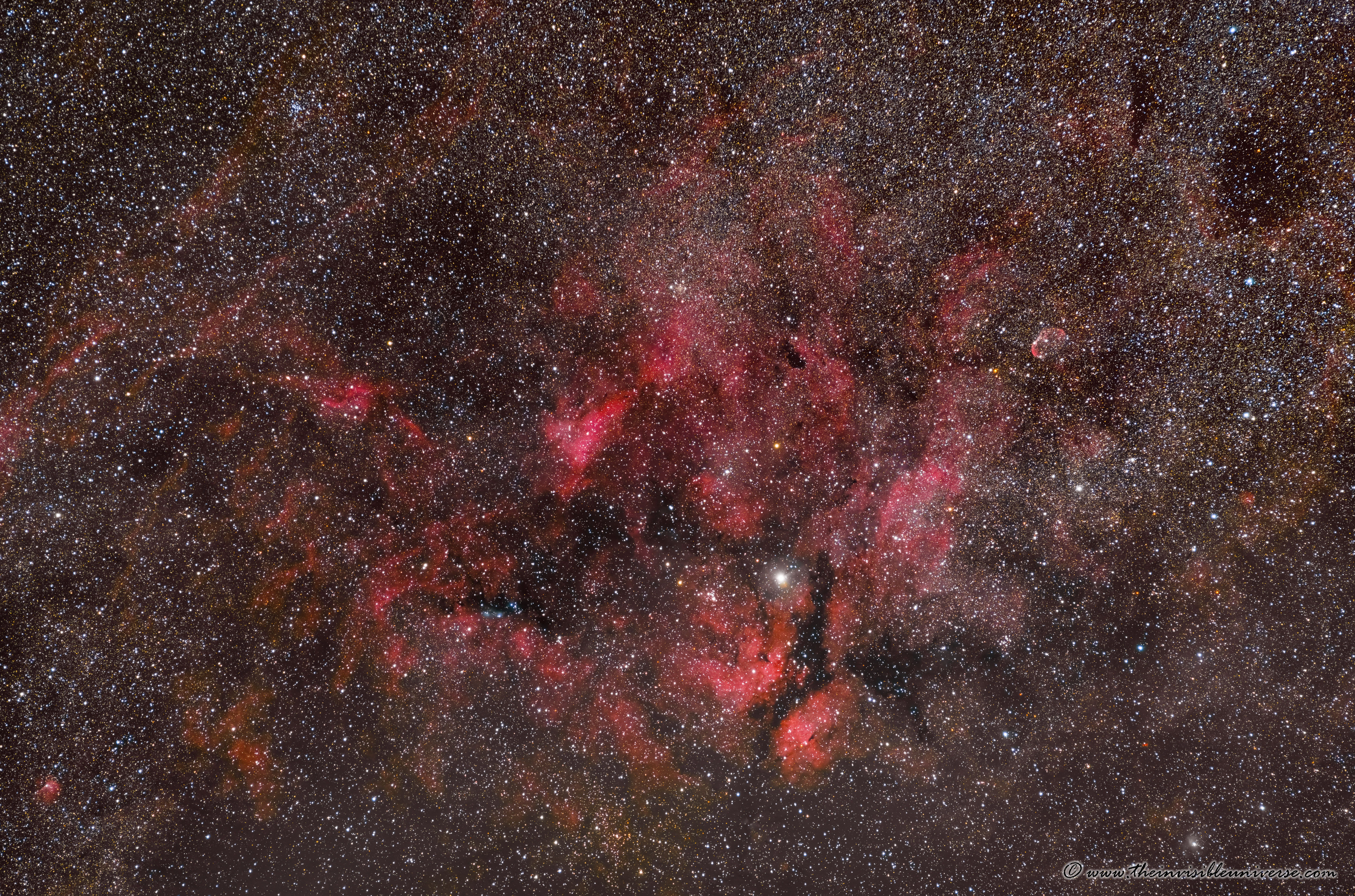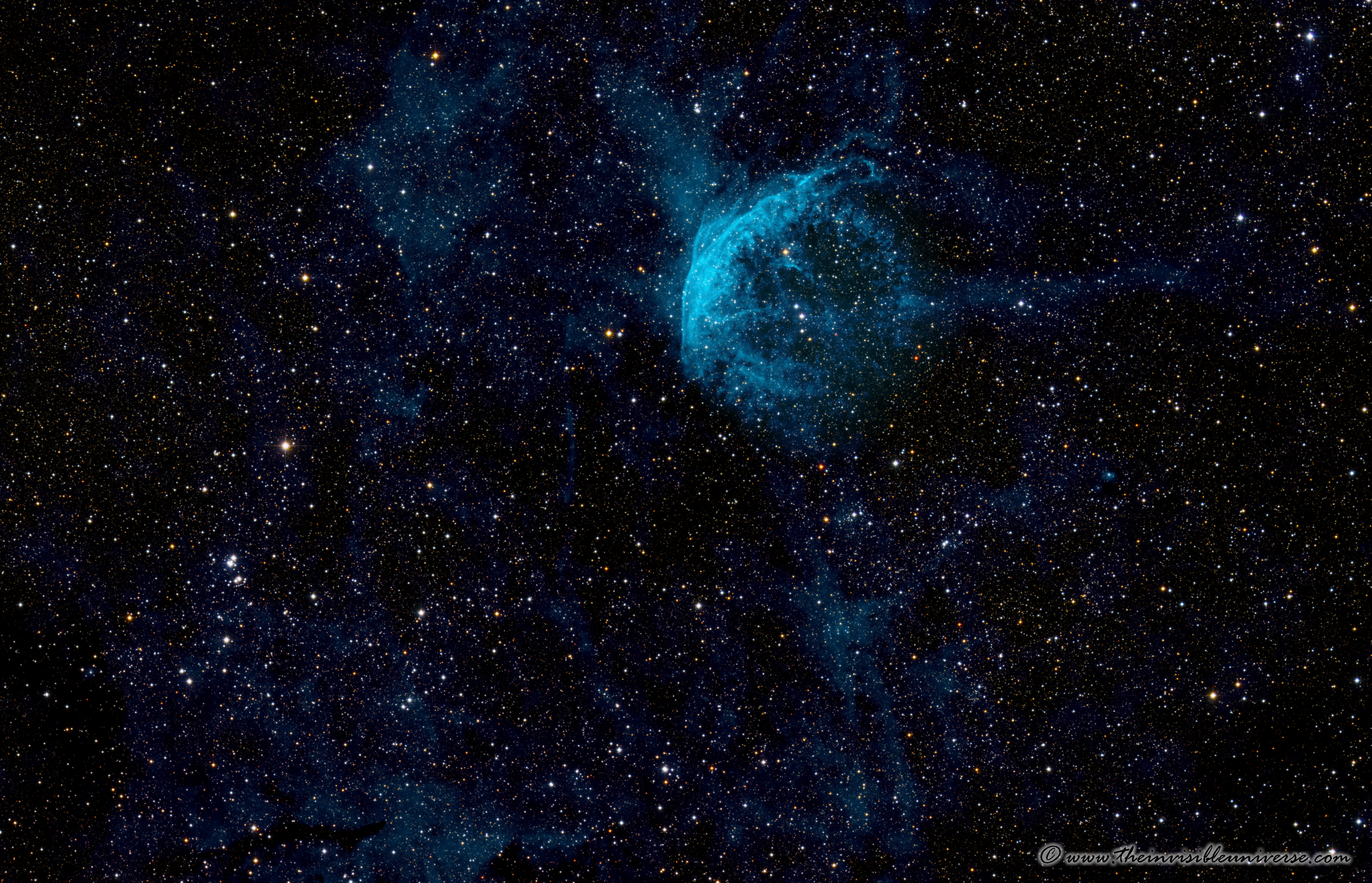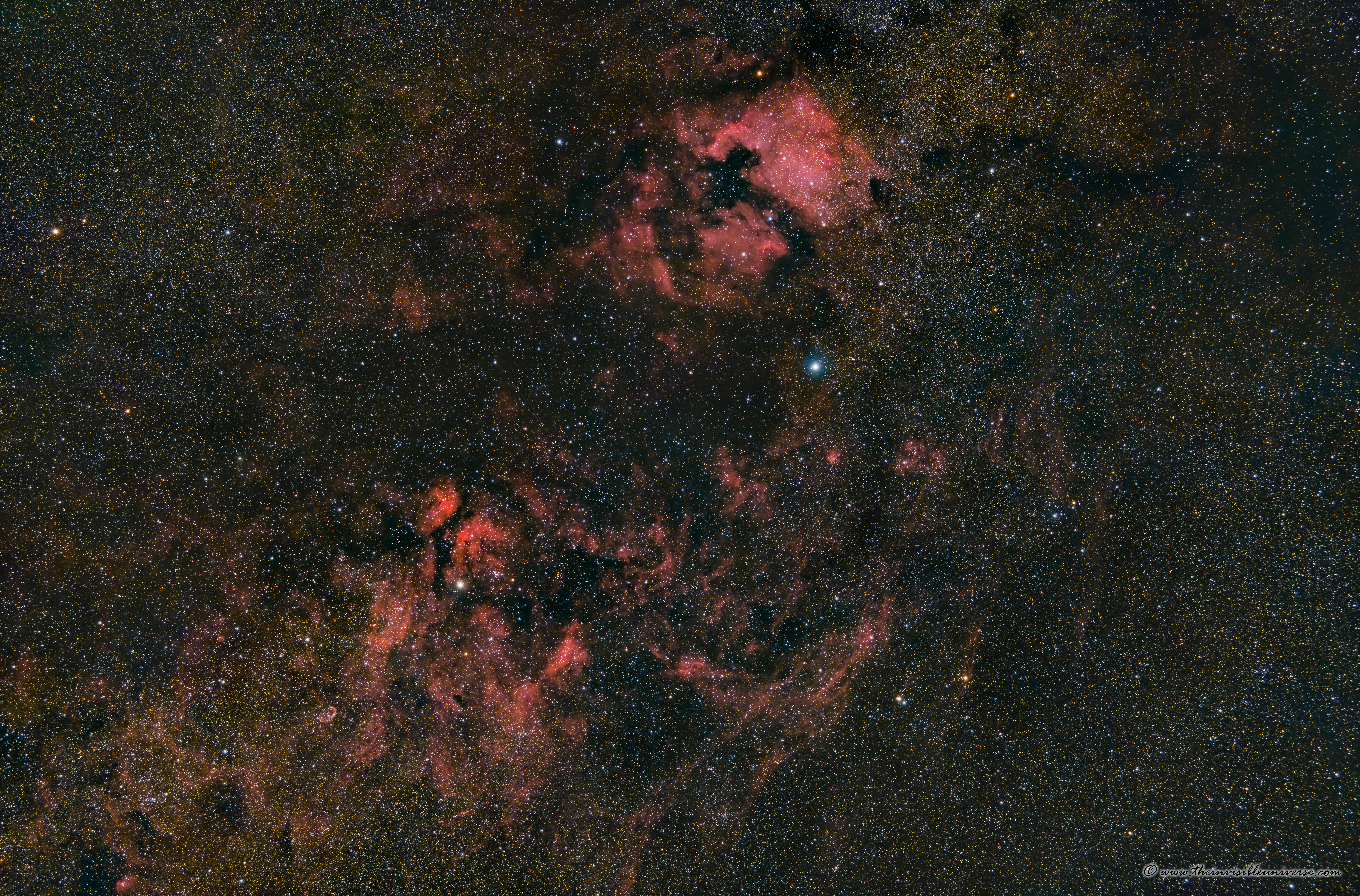 Full Frame image of the entire Cirrus Loop or Veil Nebula region, also called Cirrus Nebula. The picture includes: NGC6960, the Eastern Veil Nebula with the bright star 52 Cygni, sometimes called Witch's Broom. NGC6992 and NGC6995, the western part of the Cygnus Loop. Pickering Triangle towards the central of the Cygnus Loop.