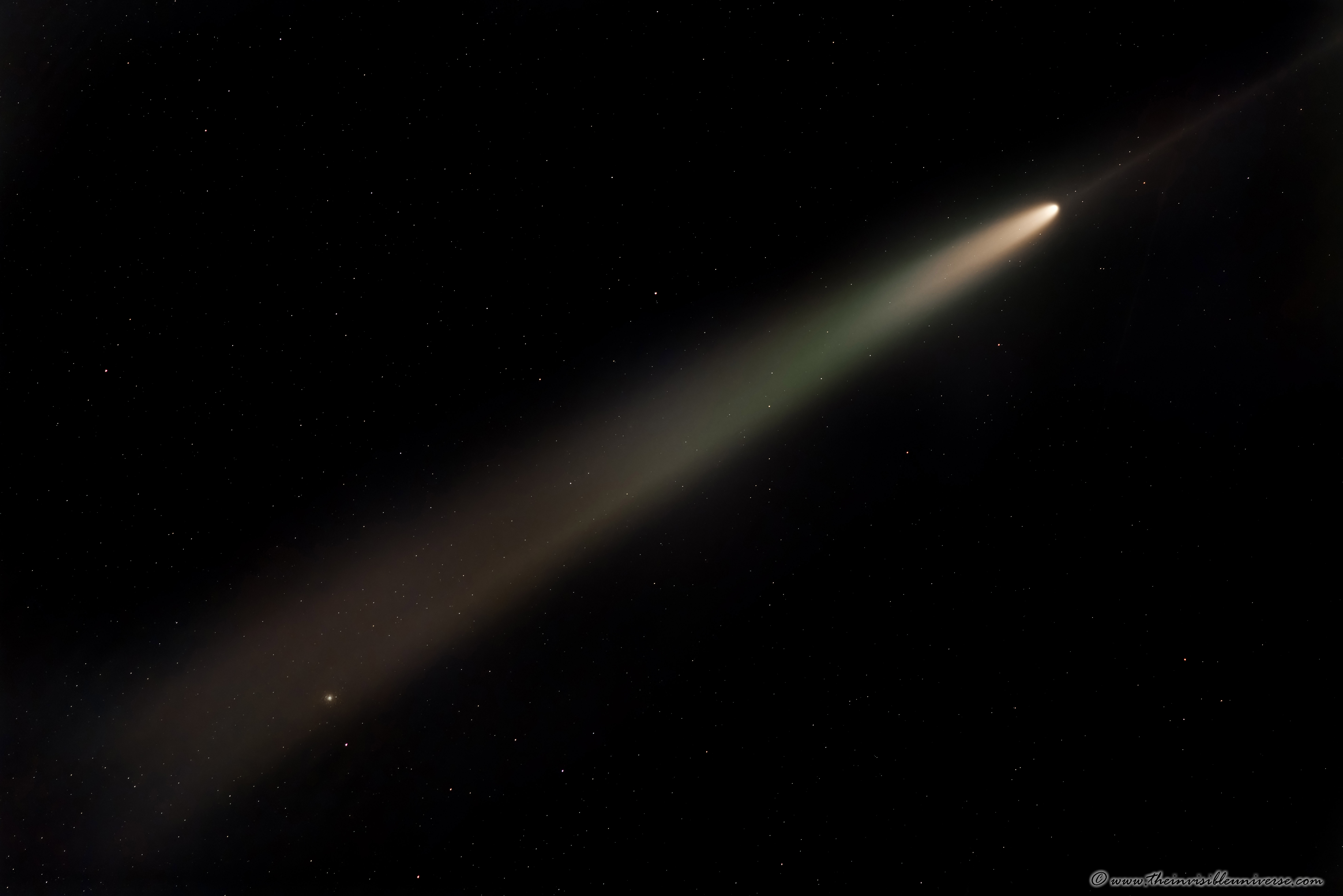 Comet C/2023 A3 Tsuchinshan-ATLAS on October 14, 2024, just a few days after its perihelion. The comet appeared on the evening sky here in Germany. I could catch it right after sunset and was amazed about the long tail and the anti-tail, which was even visible in binoculars. The long exposure shot was done with the Canon R5 and the Canon EF200 f2.8 II lens.