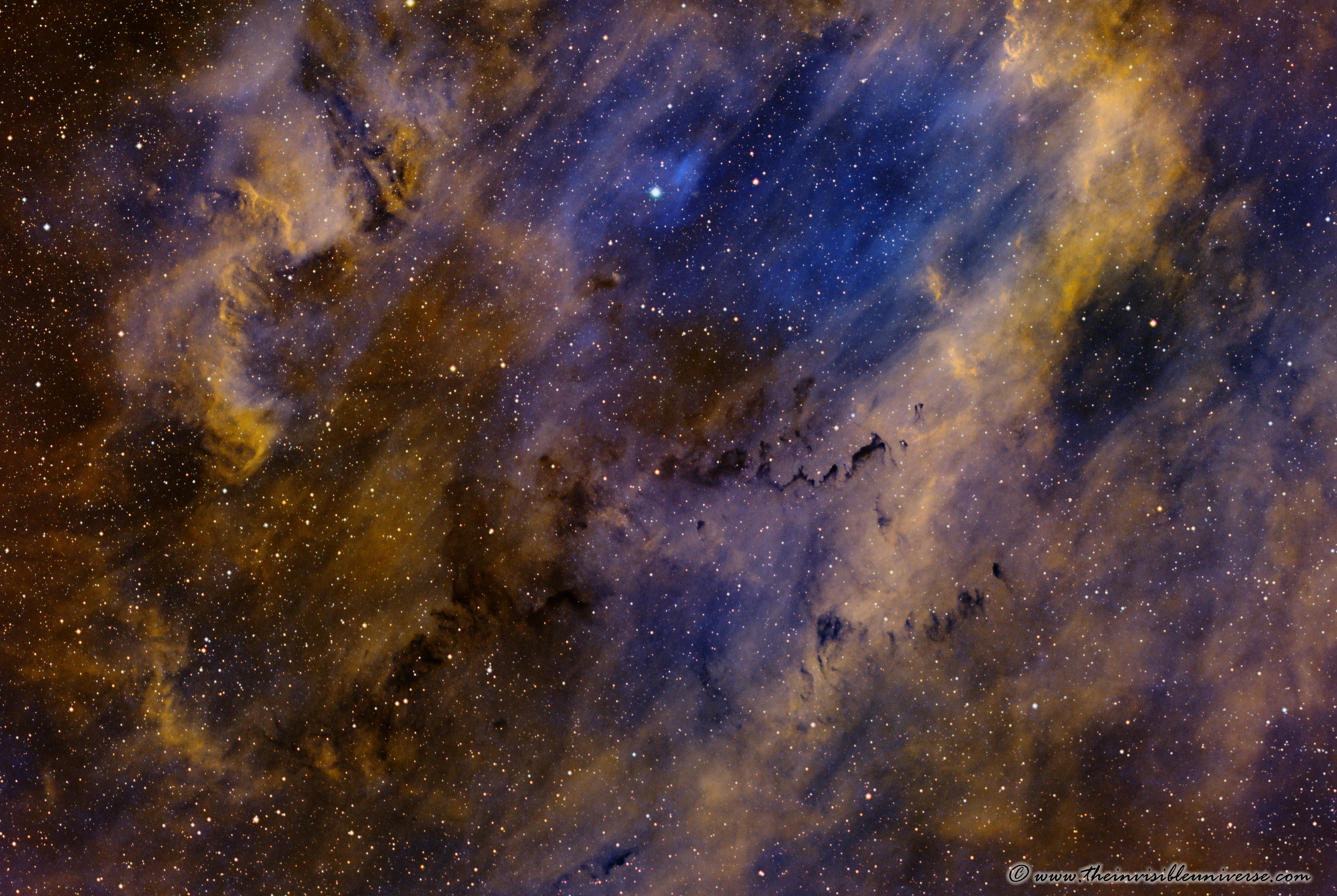 NGC7000, the North America Nebula and the Pelican Nebula in four different versions: RGB only, HaRGB, HaOIIISIIRGB and SIIHaOIIIRGB. The latter images have a total of around 21h integration time, aquired across several nights in the French Alps and back home in Germany.