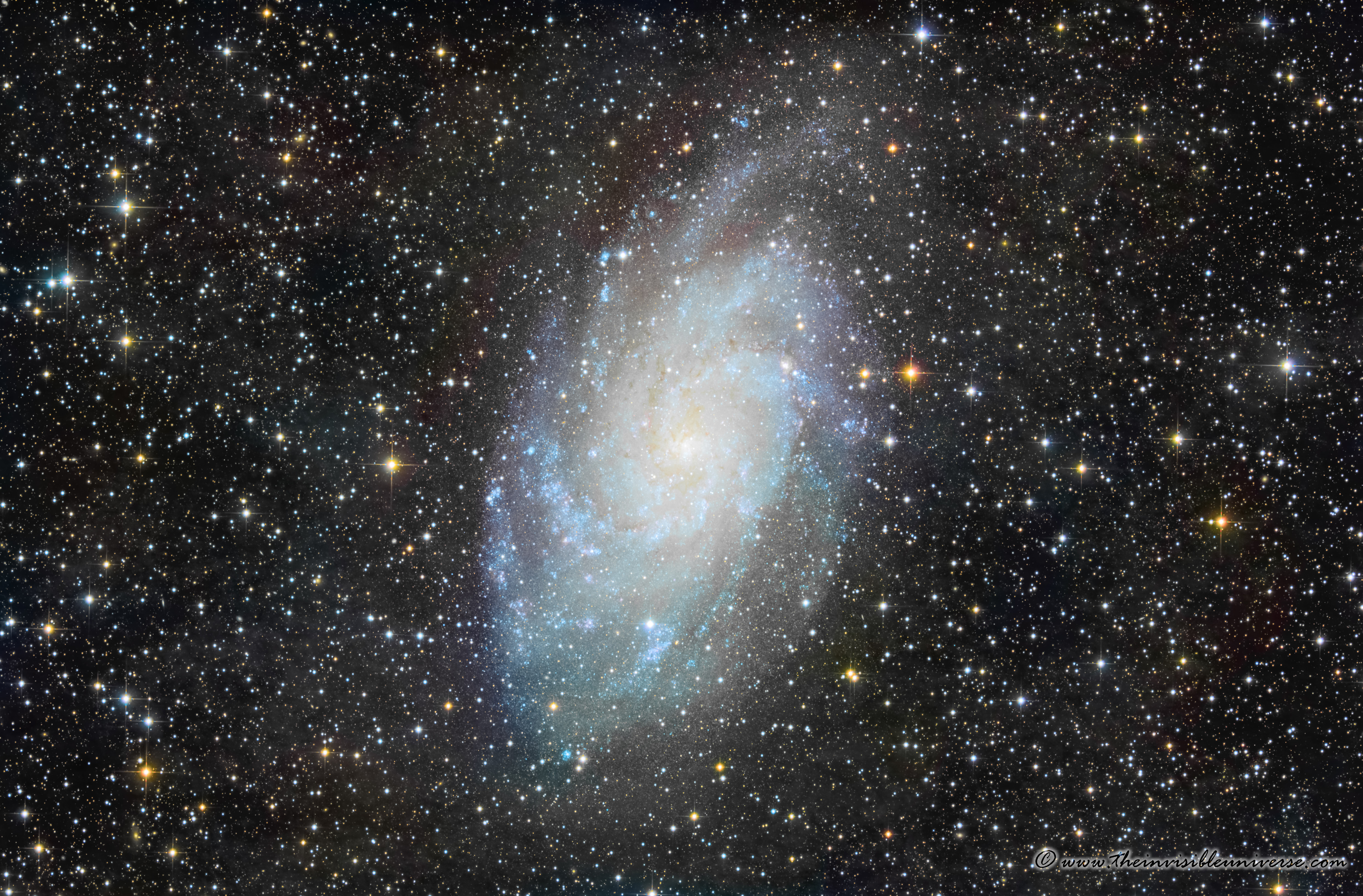 Link: Full Res annotated with Ggaia limit magintude NBLRGB Image M33