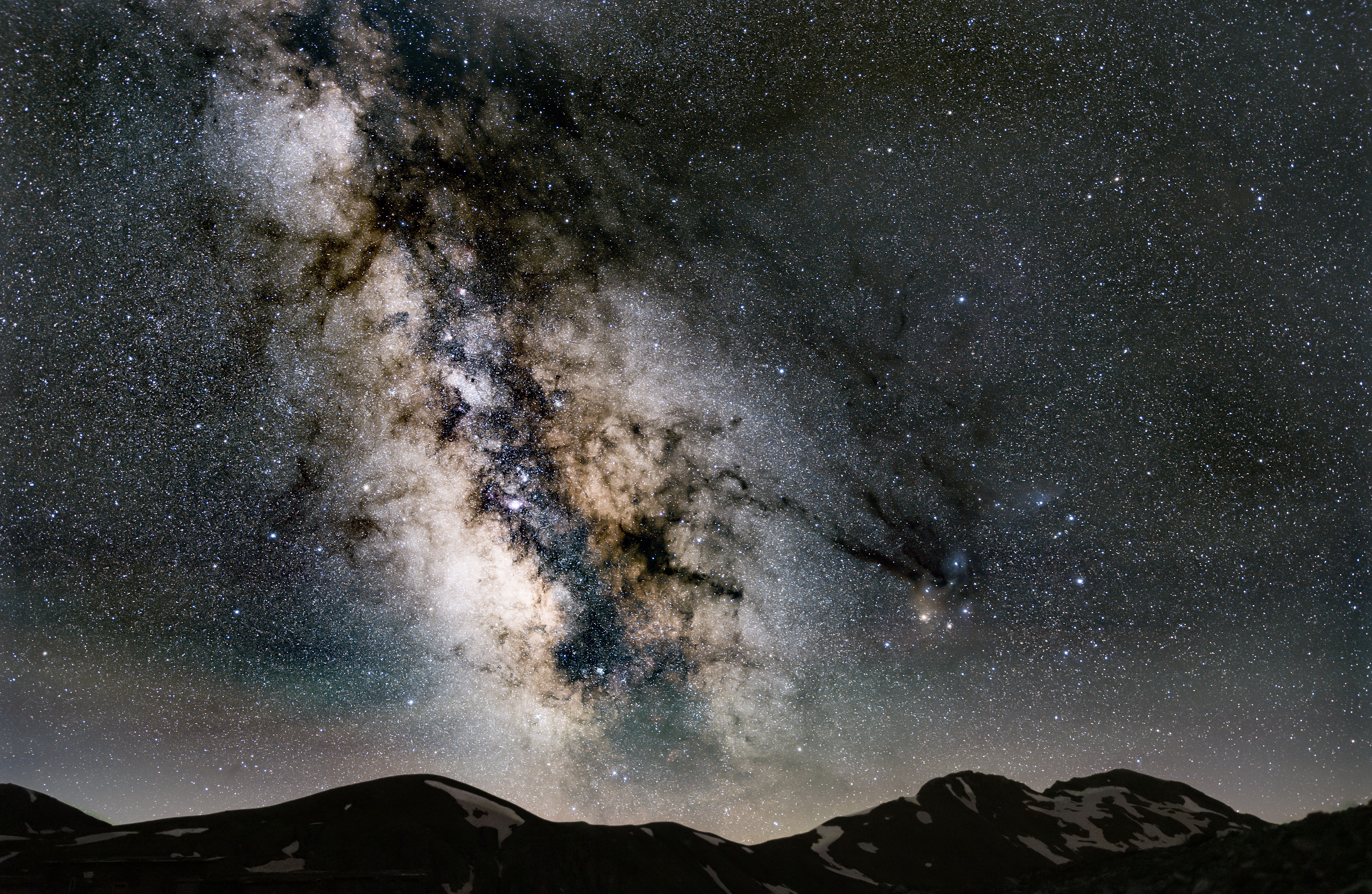 Right: Panorama shot of the Milkyway, 6 frames, 20s at ISO3200, stiched in Microsoft Image Compositing Editor, which is currently probably the best panorama maker on the market.
