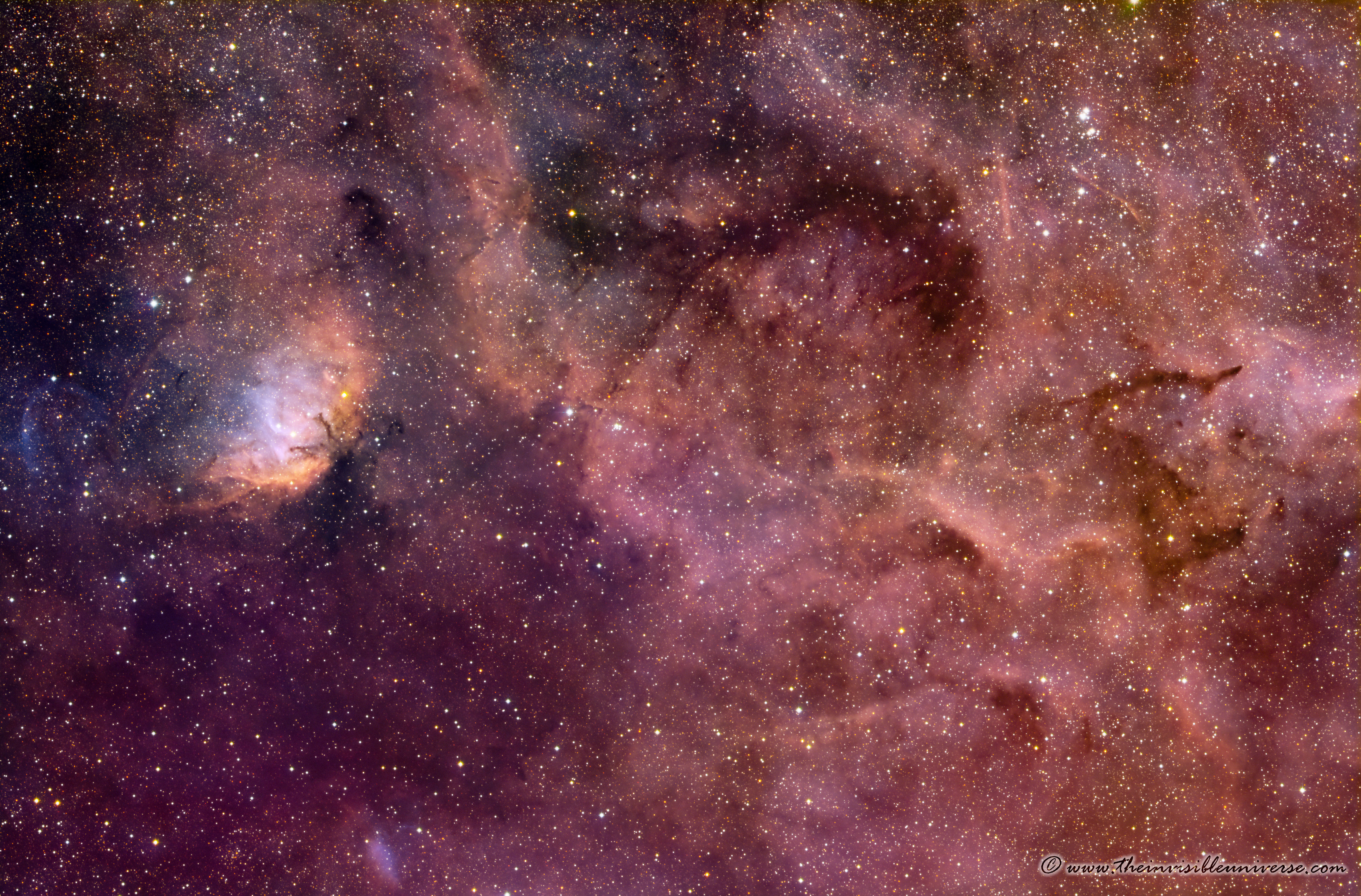 The Eagle Nebula, or Messier 16 in the constellation of Serpens. I used three clear nights to take out my mobile astro rig with the Celestron CGX mount and the TMB 115 APO to a bit darker place than my observatory to take this picture of this hughe Ha region. This obseravation location on the so-called Haarstrang in Northrhine Westphalia has a very good view to the horizon and much darker skies than the Soester Börde or the Ruhrgebiet. I have made a short video of this astro excursion. It can be viewed on my Youtube channel: