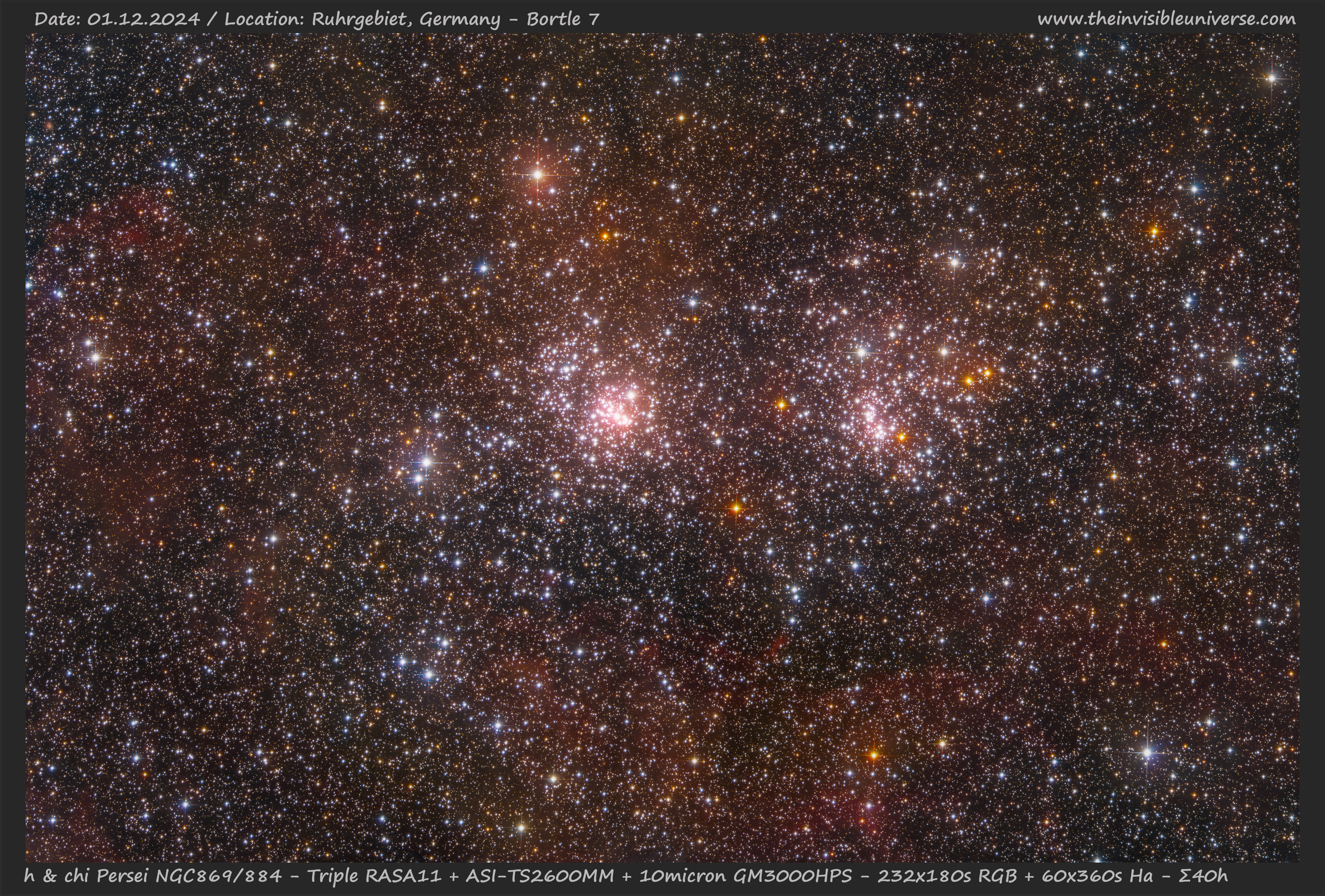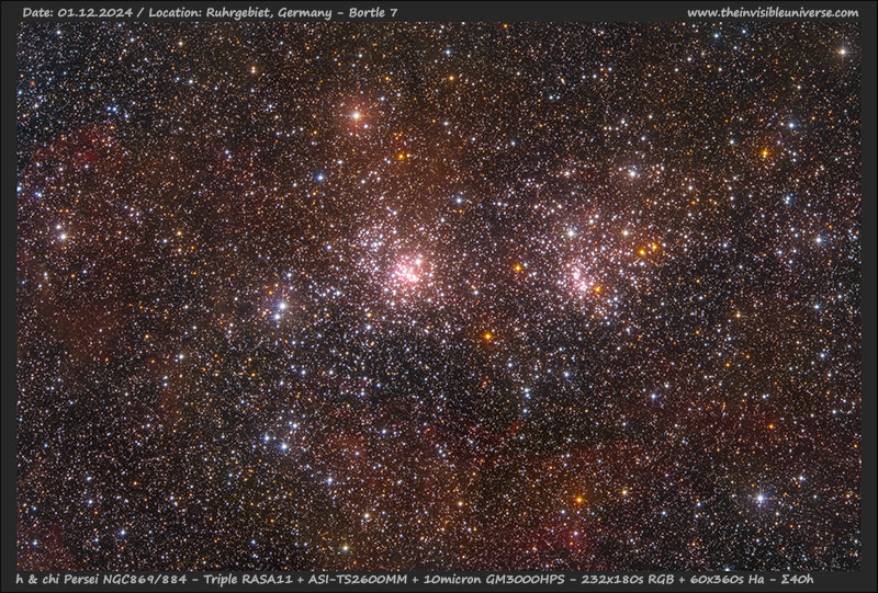 h & chi Persei, NGC869/884, a little bit different than usual. I added a significant amout of Ha data to make the hydrogen gas around the famous double cluster visible.