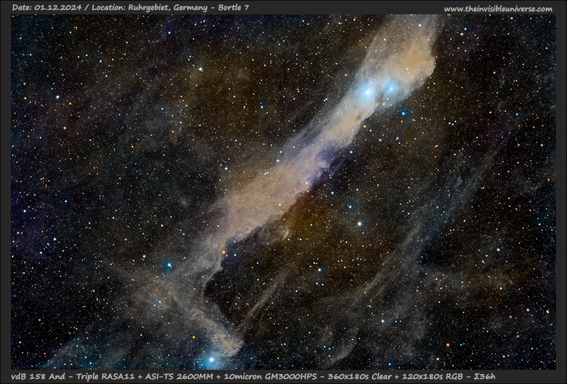 vdB 158 in Andromeda. Removing gradients in this image was a challenge. But with the help of new machine learning tools like Graxpert I could solve the problem.