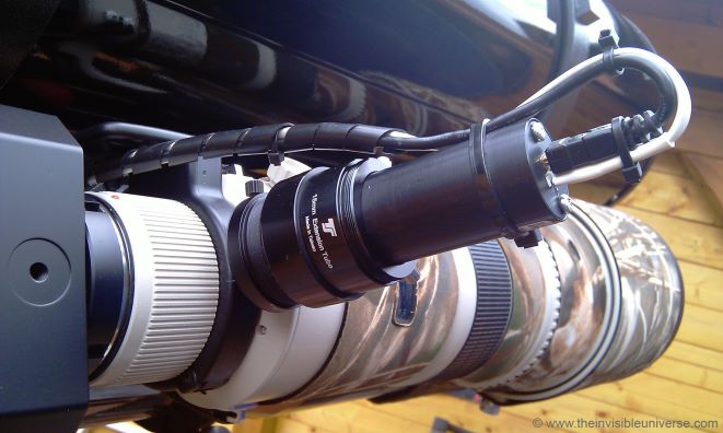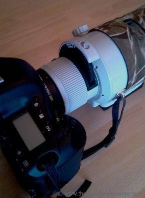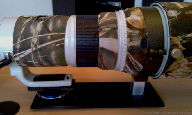 Neben teuren und auch schweren APO-Refraktoren für die mobile Astrophotographie bieten sich auch Teleobjektive an. Speziell von Canon gibt es einige astrotaugliche Teleobjektive wie z.B. das sehr gute EF 200 f2.8 L USM. Eine Tele der ganz besonderen Art ist das Canon Ef 500 f4 L IS USM, ein sog. Superteleobjektiv, geschaffen für die Naturphotographie mit DSLRs. Dieses Tele gehört mit zum Schärfsten was Canon zu bieten hat. Nahezu perfekte Bildqualität in 3850 g Alu, Magnesium, Glas und Fluoridkristall. Das EF500 ist da Non plus Ultra für den Naturphotographen. Aber auch in der Astrophotographie schlägt sich dieses Objektiv hervorragend, wie ich ==> hier zeigen konnte, oder ==> hier.