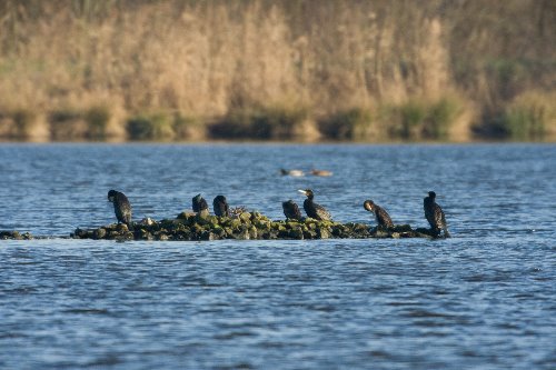 Die Kamera, eine Canon 1D Mark III, wurde mittels T2-Adapter an dem Okularauszug befestigt und mit einem Kabelauslöser versehen. Im Kameramenü wurde der Modus Zeitautomatik, Spiegelvorauslösung und 2 Sekunden Auslöseverzögerung zur Verringerung der Schwingung eingestellt. Die Empfindlichkeit wurde auf 800 ASA eingestellt, um eine kurze Belichtungszeit zu erzielen. Da an diesem Tag alle dort rastenden Wasservögel (u.a. Kormorane und Kanadagänse) sowie in einiger Entfernung ein nach Futter suchender Nutria in geschätzten mehr als 150 m Entfernung zu finden waren, kam zusätzlich noch ein 1,4x Telekonverter zum Einsatz. Dieser (ein Kenko 300 Super Pro) lässt sich allerdings nicht ohne weiteres ohne ein EF-Objektiv betreiben. Die Kamera zeigt dann eine Fehlermeldung an. Deshalb muss man die Kontaktstifte an dem Konverter Kameraseitig mit einem dünnen Tesa-Streifen abdecken.