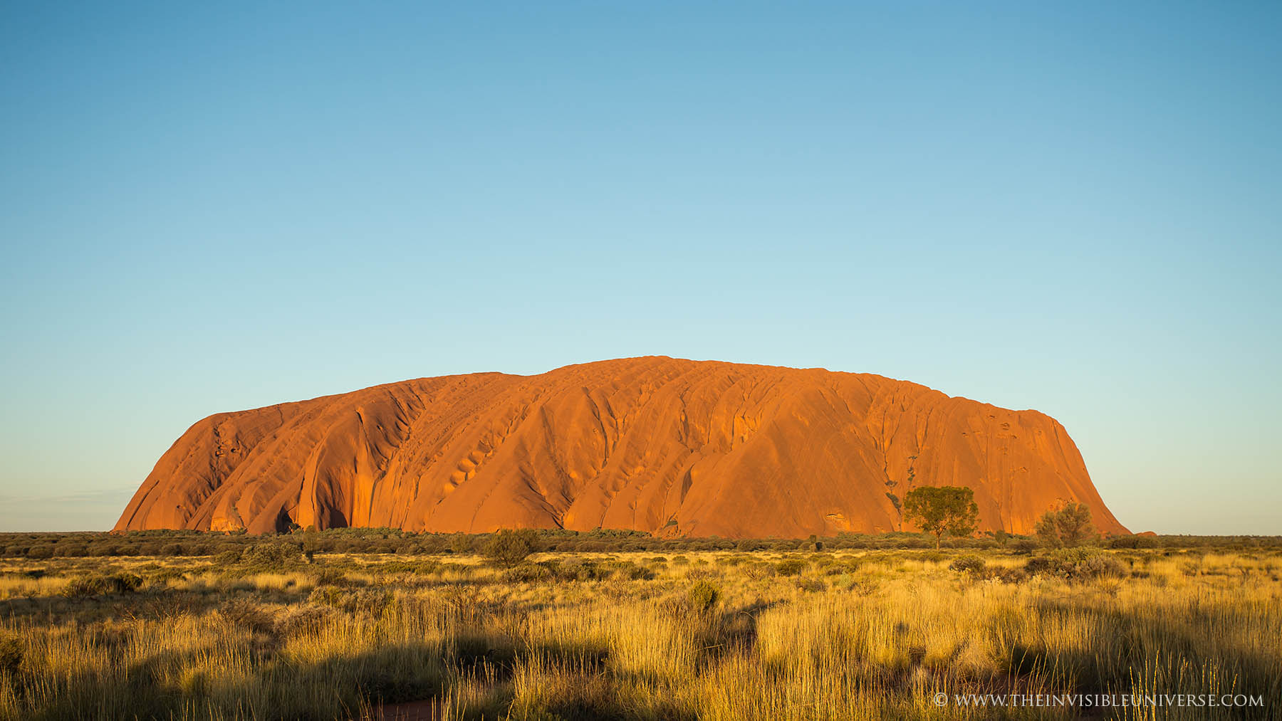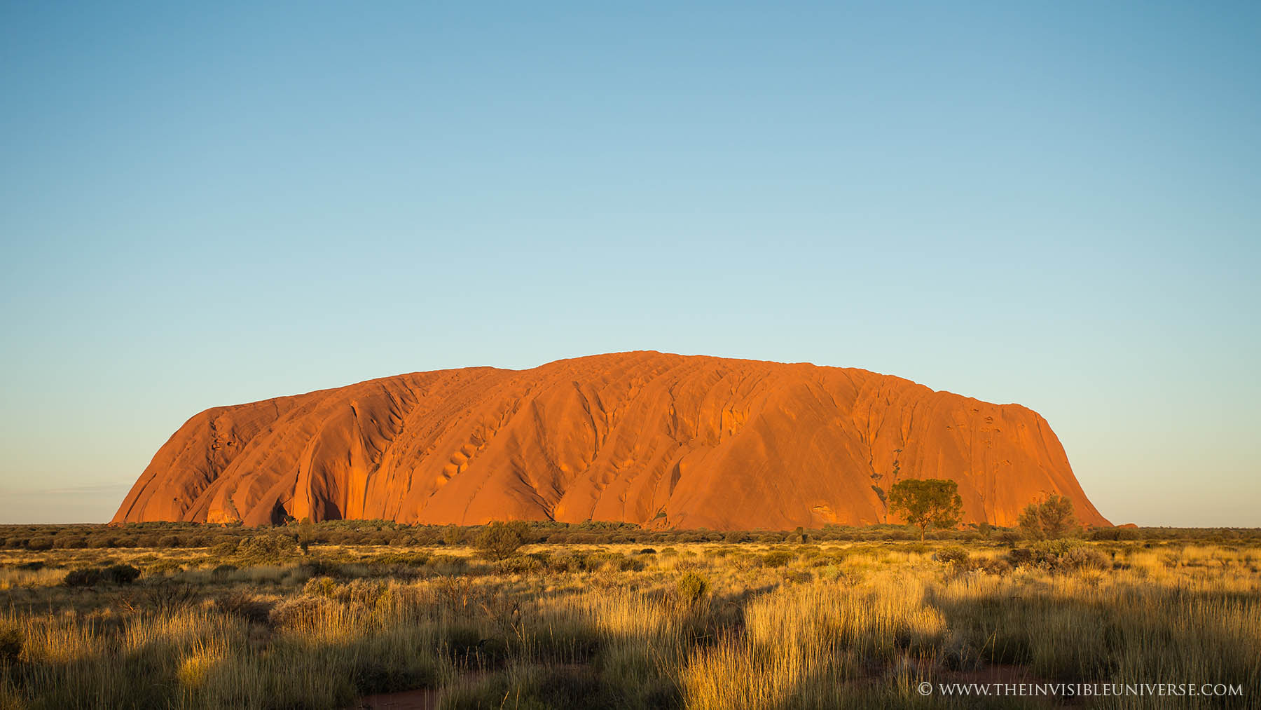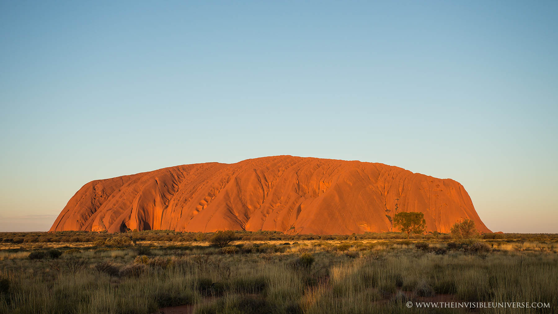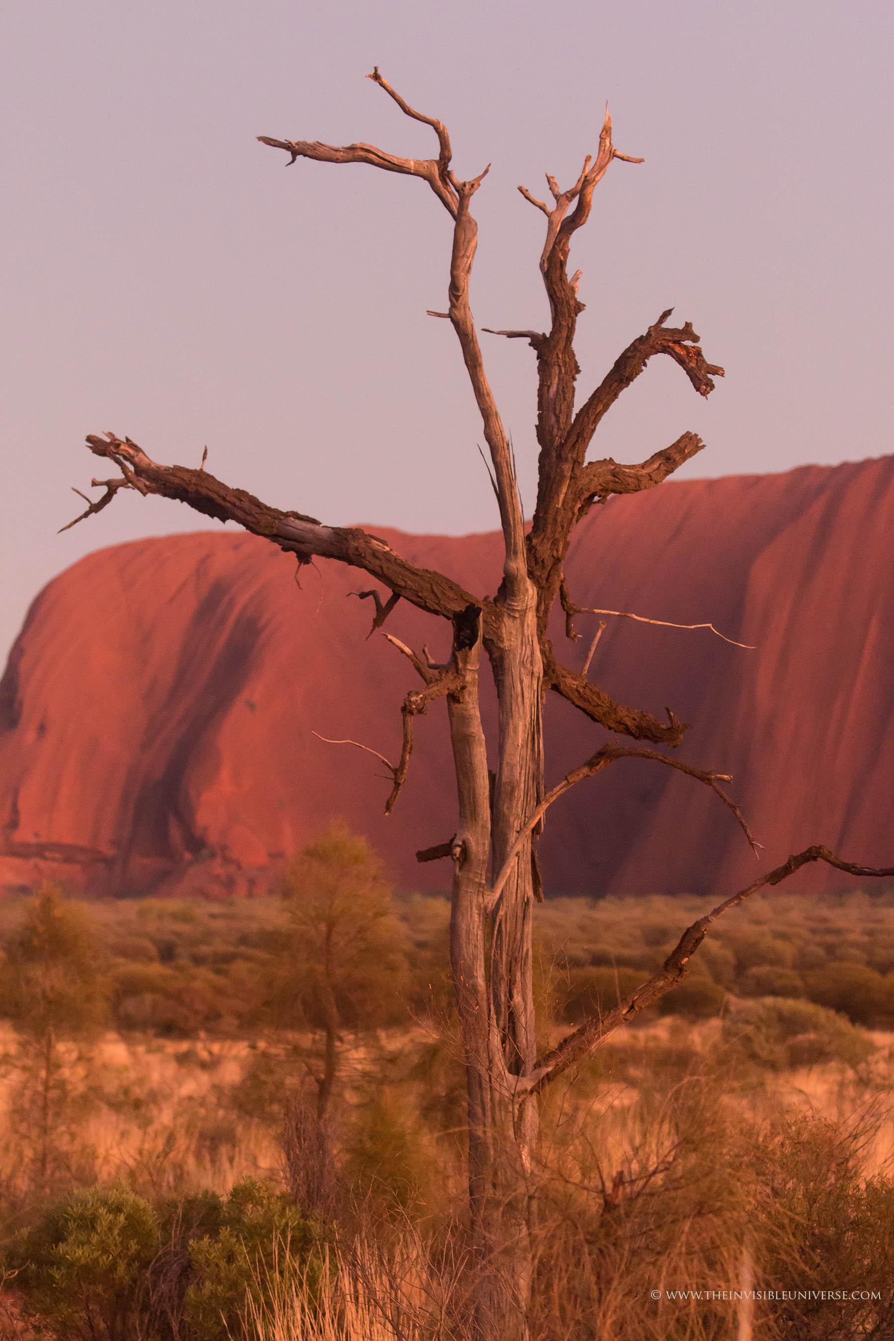 Der Ayers Rock wechselt zu jeder Tageszeit je nach Sonnenstandsein Gesicht.