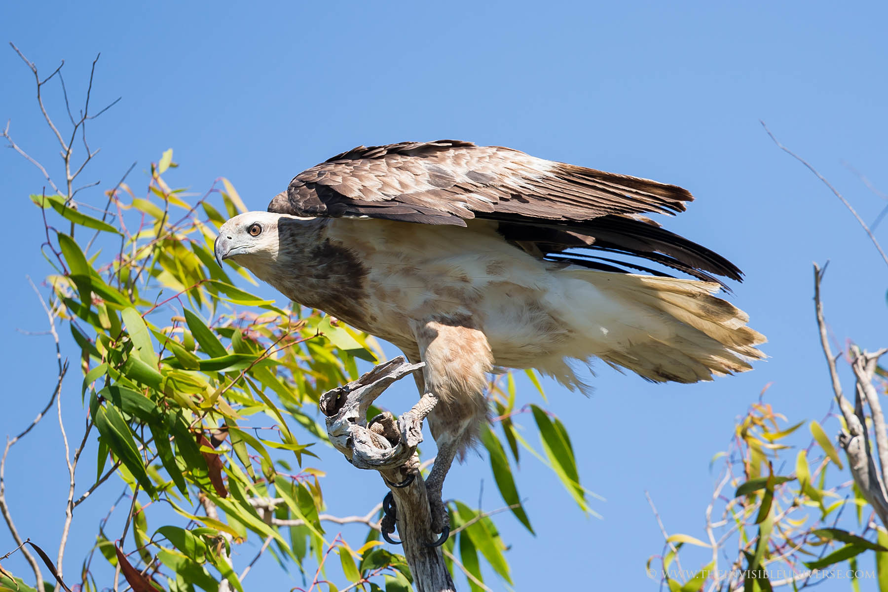 Der White-bellied sea eagle, oder auch whited-breasted sea eagle - auf Deutsch Weißbauchseeadler - ist speziell am Mary River häufig anzutreffen. Eine beeindruckende Gestalt mit bis zu 2,2 m Flügelspannweite, die an den Ufern des Flusses auf Beute lauert.