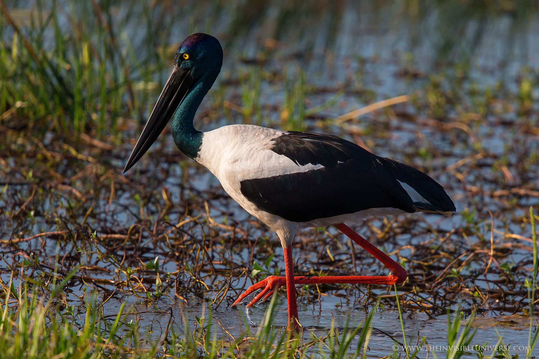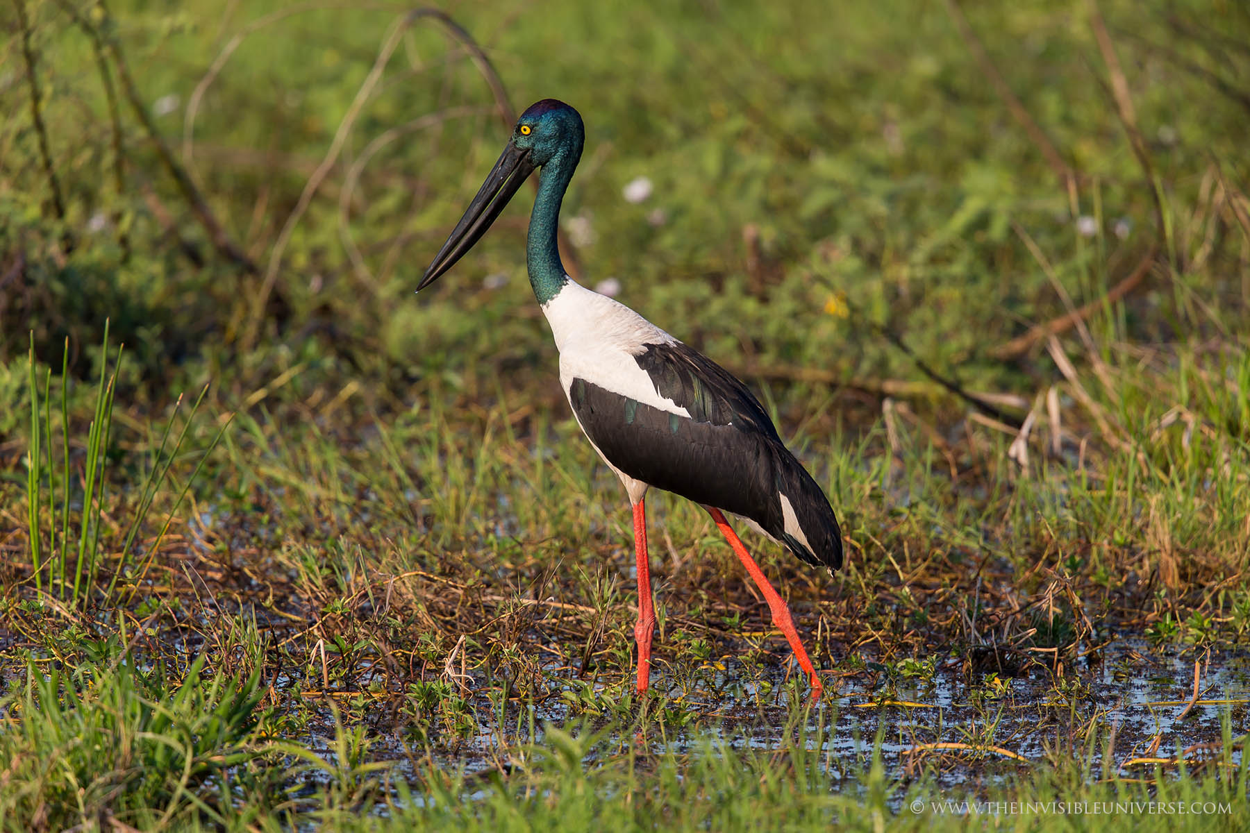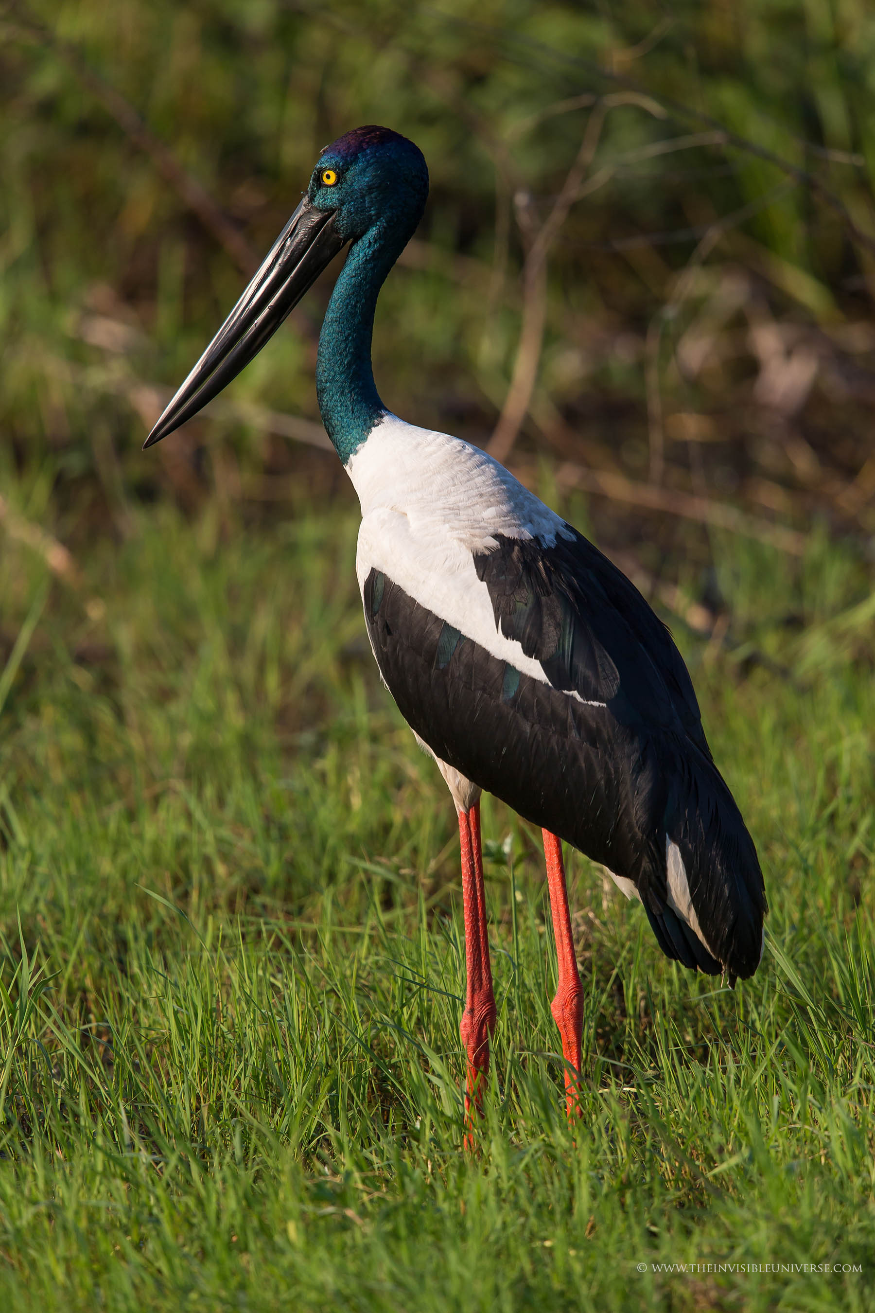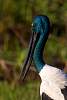 Der Jabiru gehört zu der Gattung der Riesenstörche und kommt im gesamten indo-australischen Raum vor. Er teilt sich diese Gattung mit einer zweiten Art, dem afrikanischen Sattelstorch, den ich schon in Südafrika bewundert habe. Beide Arten werden ca. 1,40 m groß und haben Flügelspannweiten von 2,2 m und mehr!