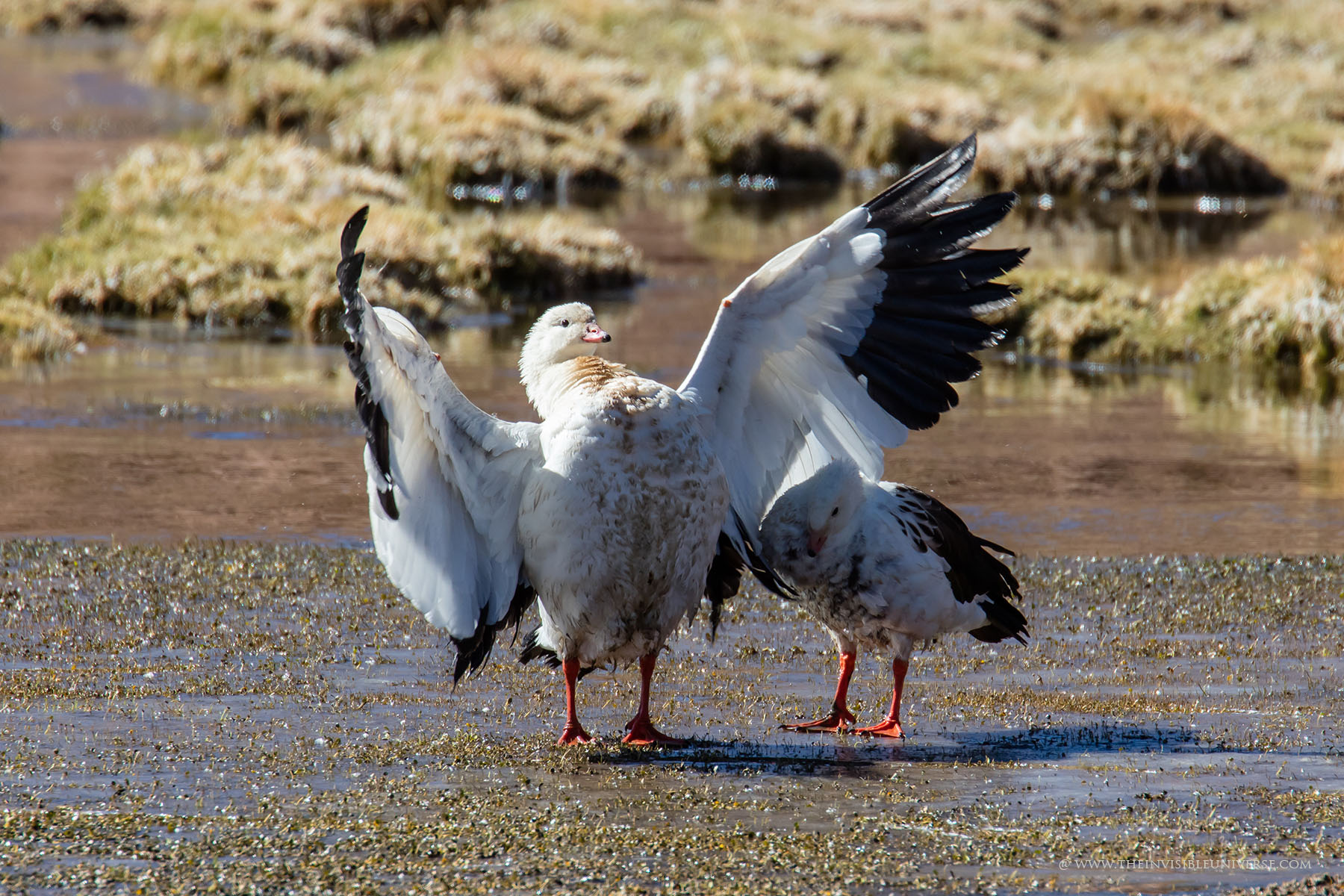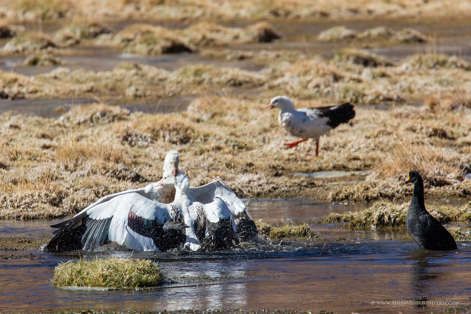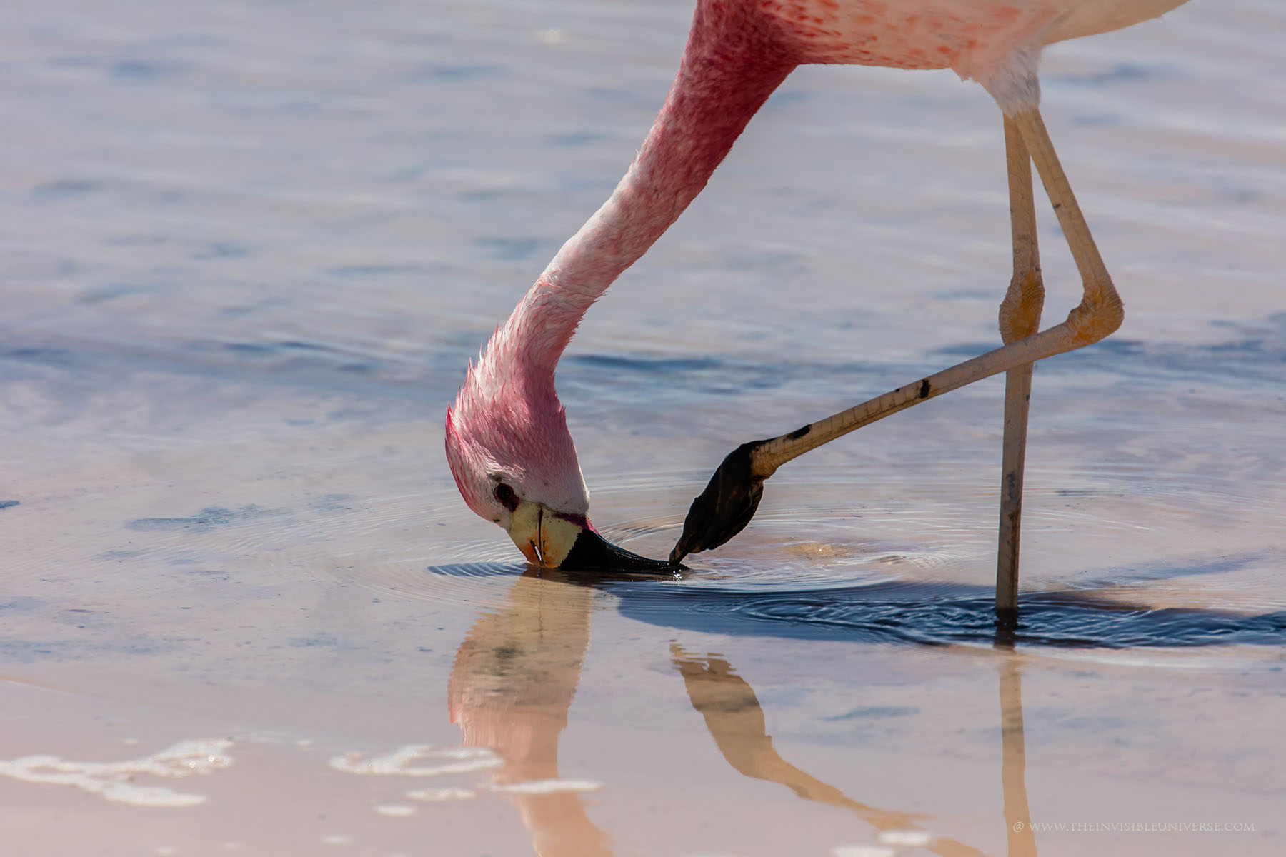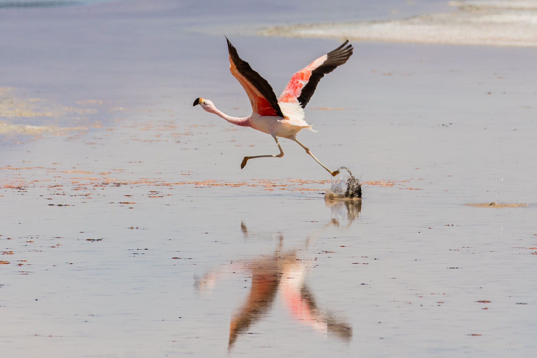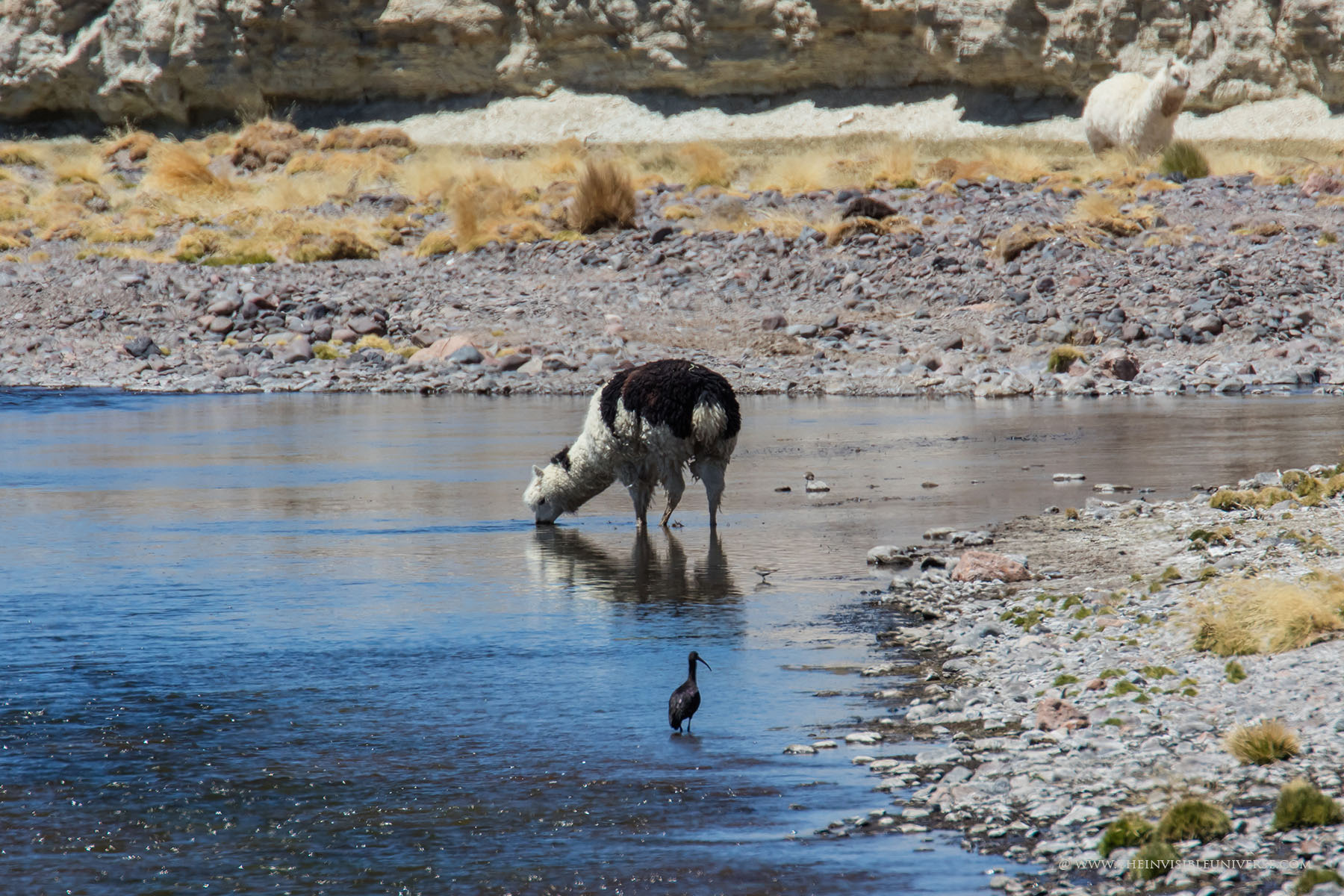 Aus einem unterirdischen See dringt salzhaltiges Wasser an die Oberfläche. Andenflamingos, Anden-Säbelschnäbler und andere Vögel waten hier durch das Wasser. Die Vulkane Miniques und Pular bilden die markantesten Gipfel der Hauptandenkordillere, die sich majestätisch hinter der Laguna Chaxa erhebt. Die berühmten Artemia-Krebse sind hier auch beheimatet und dienen den Flamingos als Nahrungsgrundlage.
