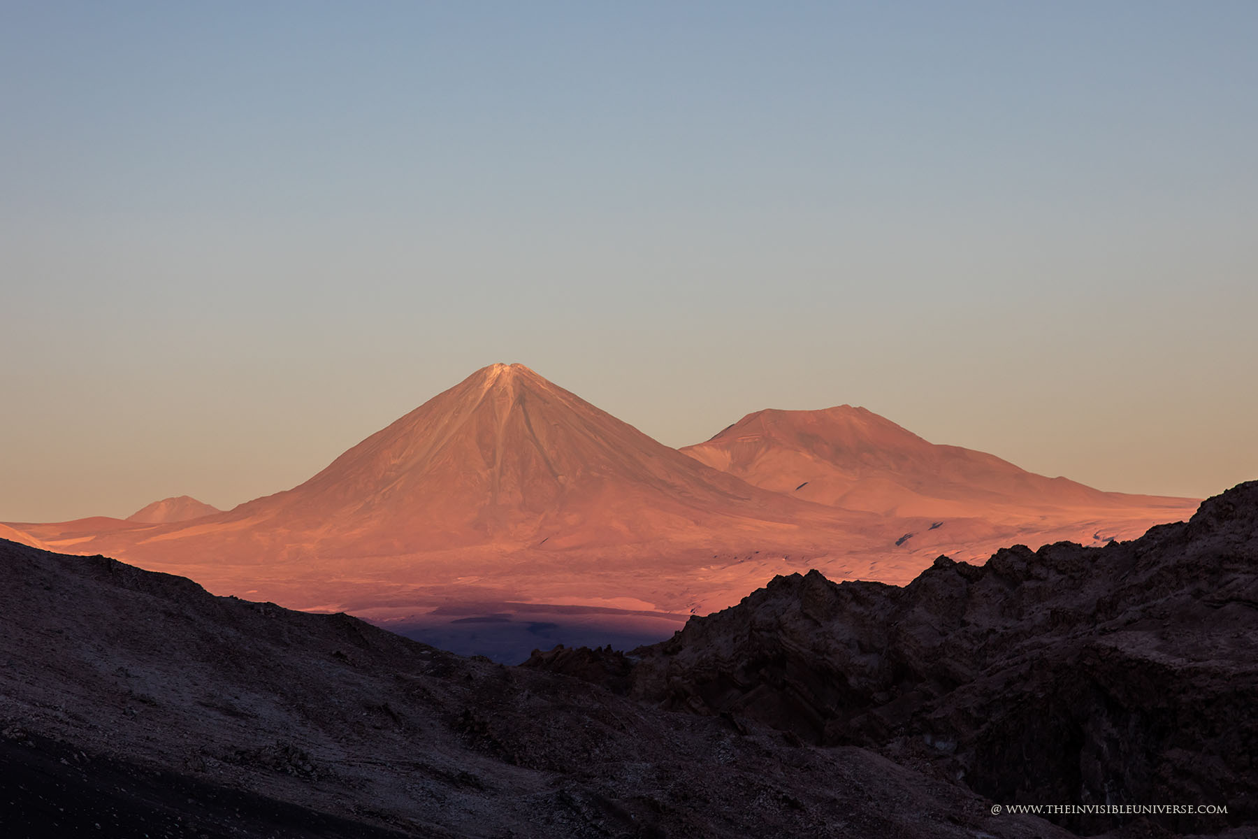 Das Valle de la Luna ist besonders bei Sonnenuntergang schön, auch wenn hier der Massentourismus schon störend ist. Kurz bevor die Sonne unter dem Horizont verschwindet beginnt der Vulkan Lincancabur als prägnantester Vulkan der Andenkette bei San Pedro rot zu glühen.