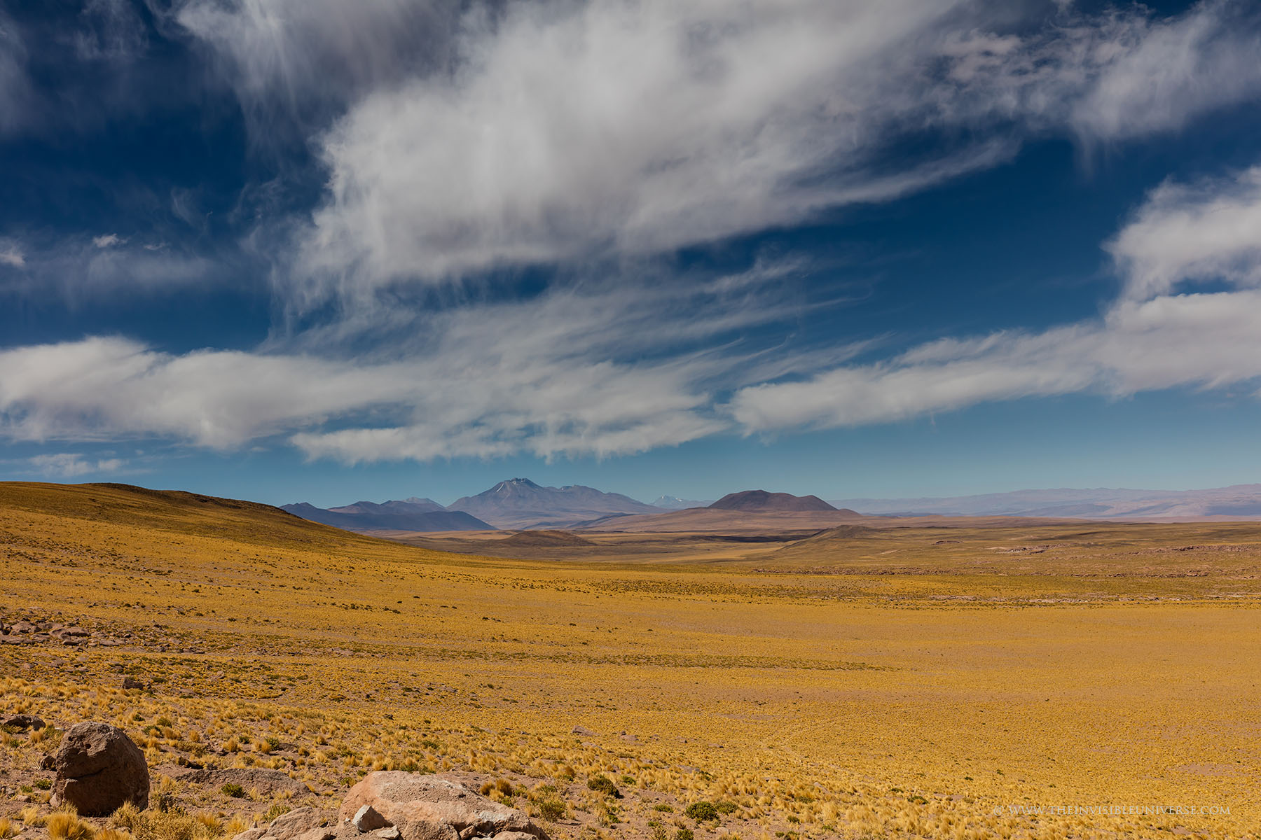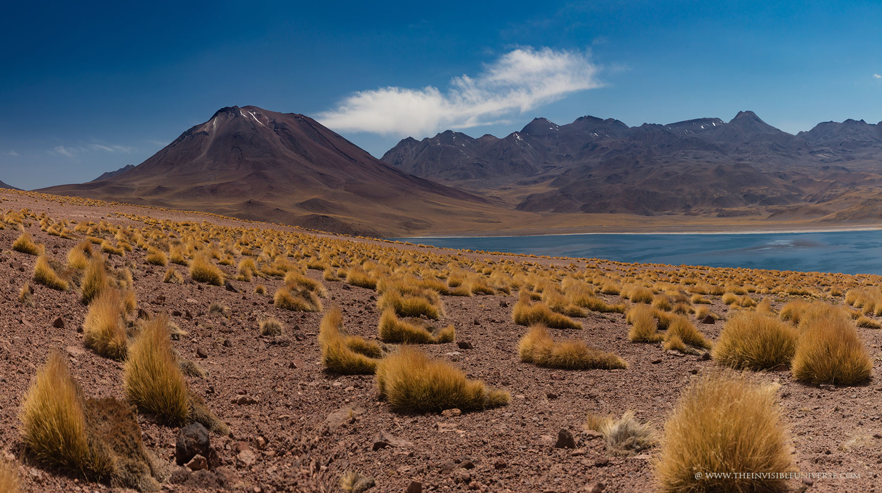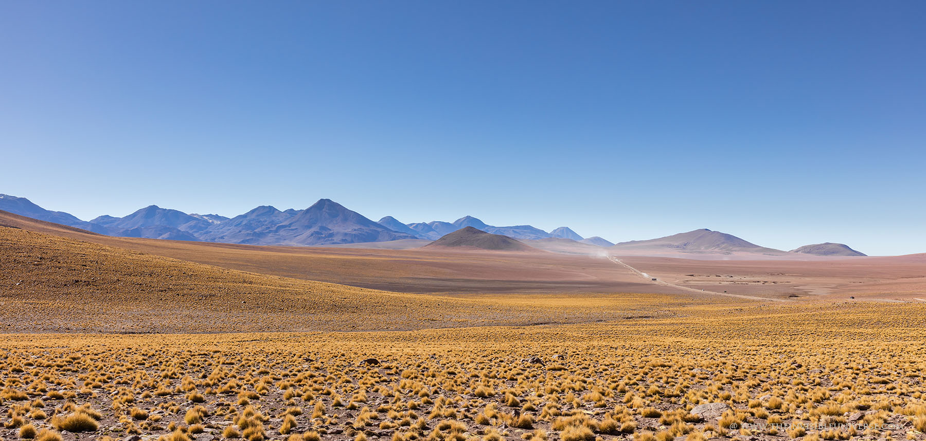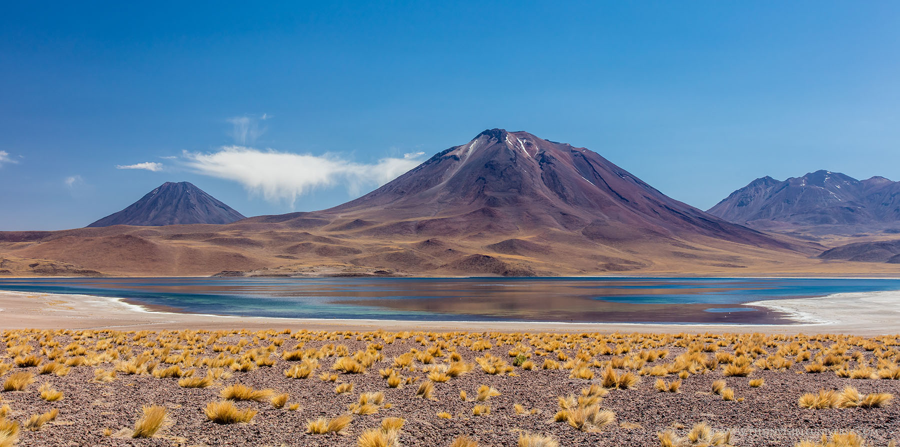 Eine sehr schöne Landschaft bietet die Routa 23 in Richtung Südosten zum Reservas National Los Flamencos und den Lagunas Miniques und Miscanti. Unterwegs durchquert man eine traumhafte Landschaft aus Vulkanen und goldgelbem Andengras mit grandiosen Ausblicken bis zum Horizont. Leider kann kein Foto die Schönheit dieser Landschaft wiedergeben.