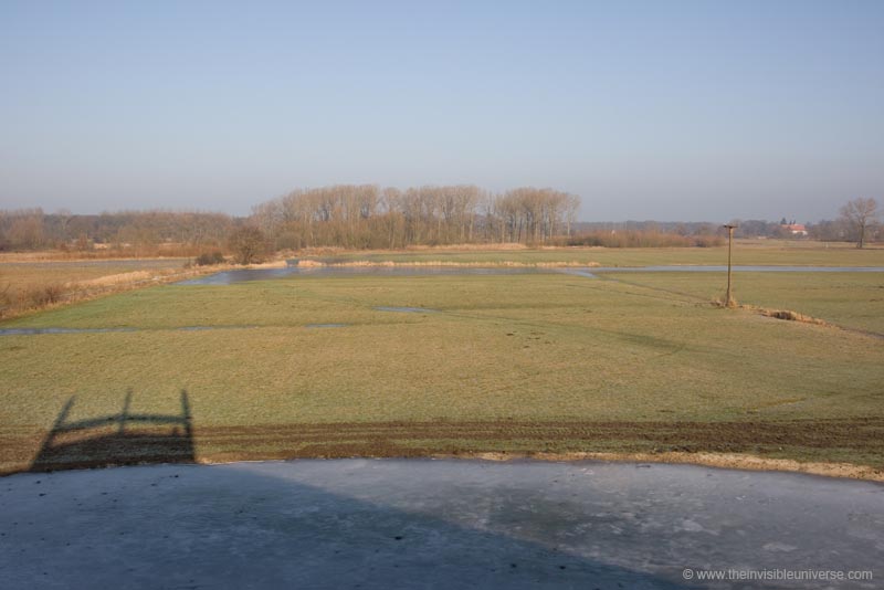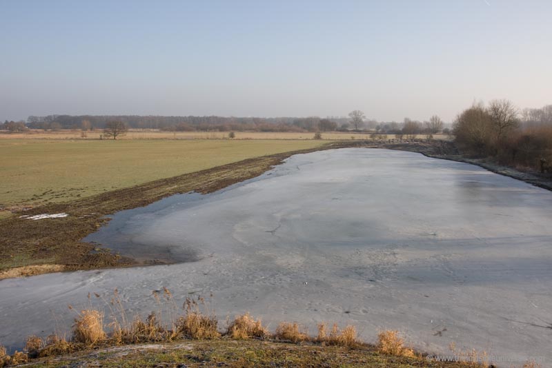 Die zweite Warte befindet sich am sog. Anglerweg westlich von Hellinghausen. Von dort hat man einen weitläufigen Blick auf die zeitweise überschwemmten Lippewiesen und ein Storchennest. Hier tümmeln sich insbesondere im Frühjahr viele Kanadagänse, Blässhühner, Enten etc. In der Nähe ist auch eine grössere Brutkolonie von Graureihern - leider unzugänglich in einem Wald - und somit sind oft Graureiher und manchmal auch Silberreiher in der Klostermersch zu sehen.