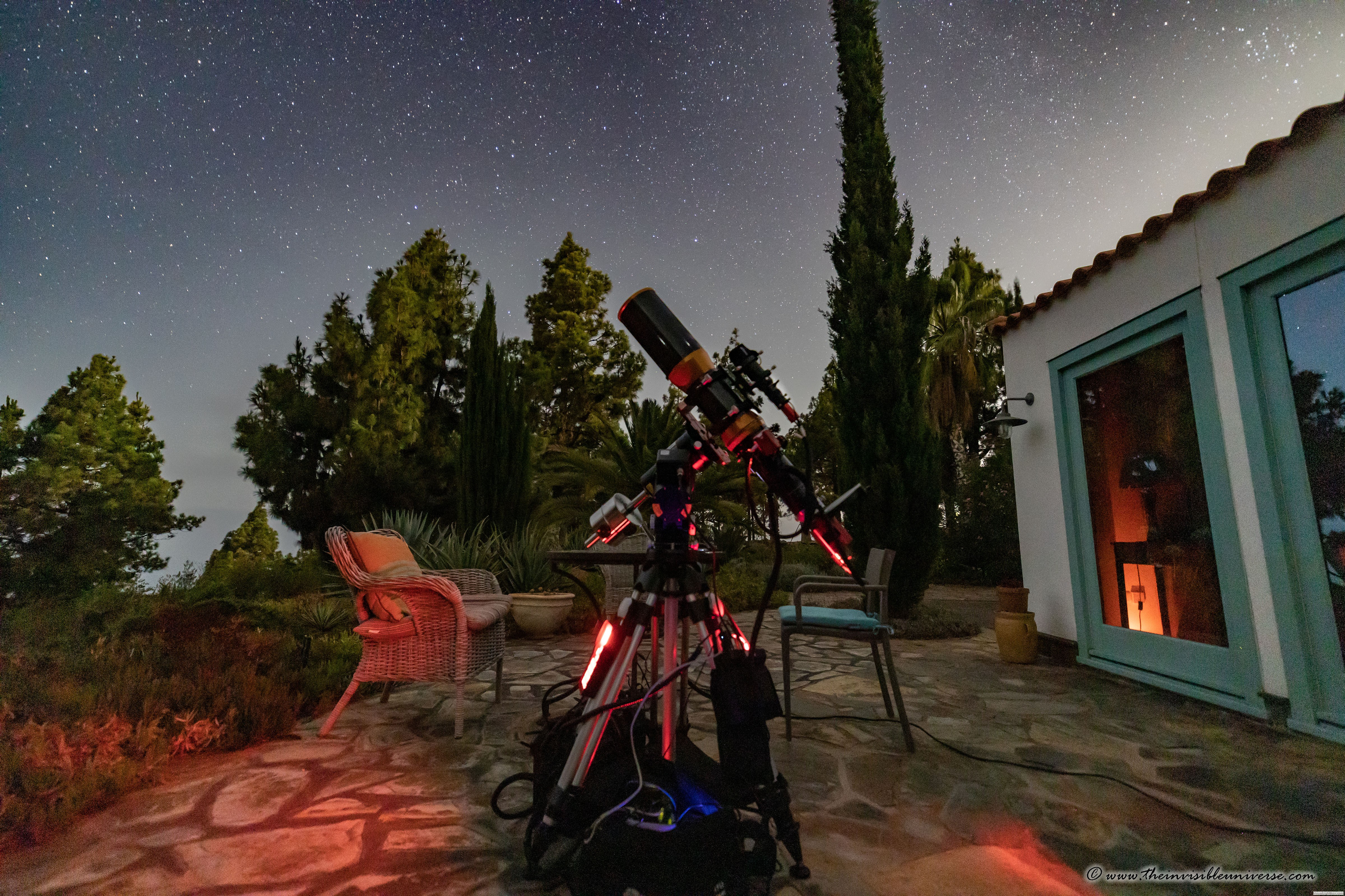 My observing site on the terrace of Finca Casa Miramatos near Puntagorda on the northwest coast of La Palma. Despite some tall trees, the view of the dark summer night sky was good. The setup with the 10micron GM1000HPS, the Aries tripod and my Image Train with the proven TMB 115/805 APO and the ASI6200MM was the perfect choice!