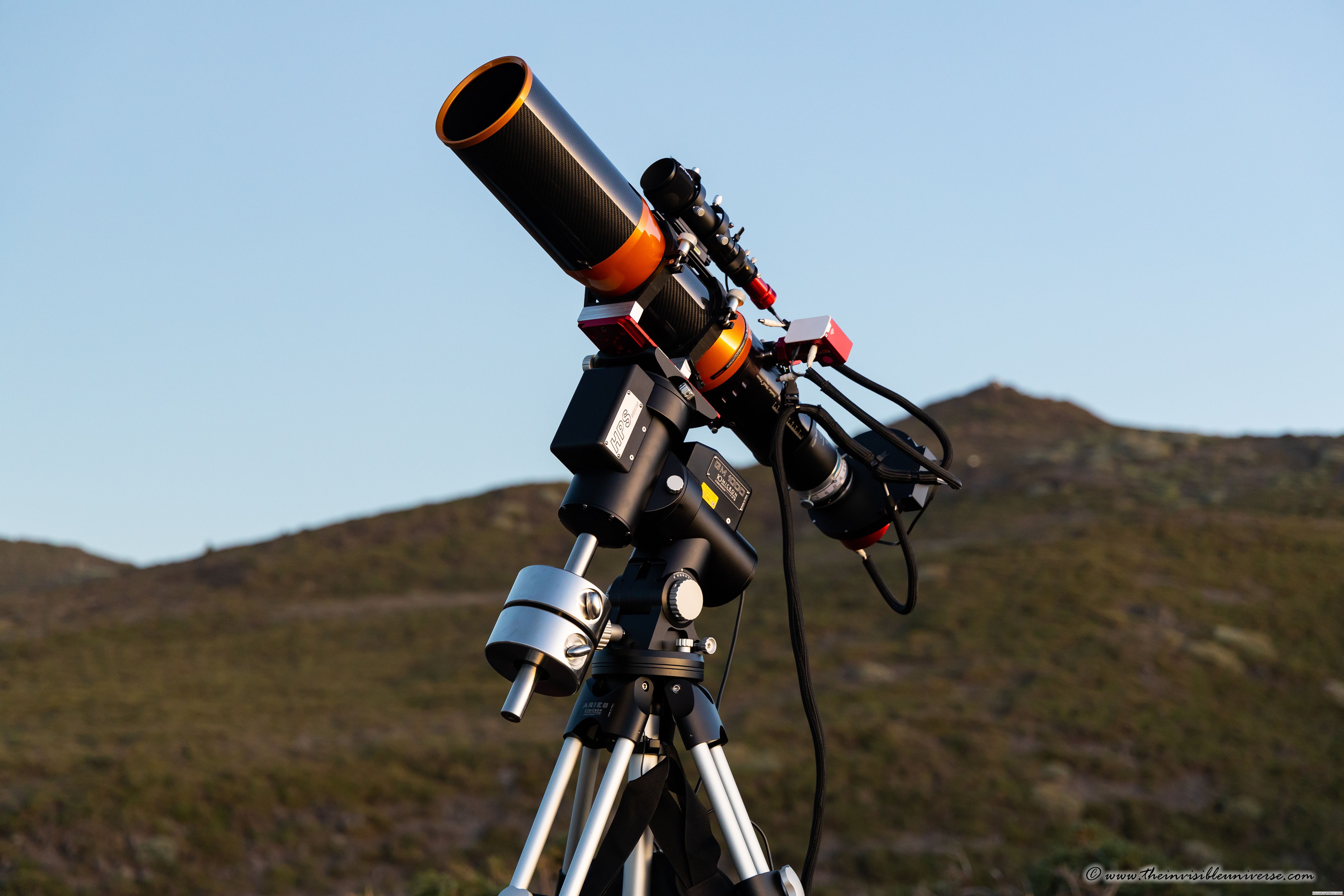 Image above: my mobile astrophotography setup during my vacation on La Palma in 2022. The 10micron GM1000HPS, Aries tripod and battery were rented from the ATHOS Star Campus in Las Tricias. The A&M TMB 115/805 triplet APO and Riccardi M82 reducer, the ASI6200MM with a 2" filter wheel, and the 50mm guidescope with the ASI120MM mini are my own image train that I took to La Palma in checked luggage.