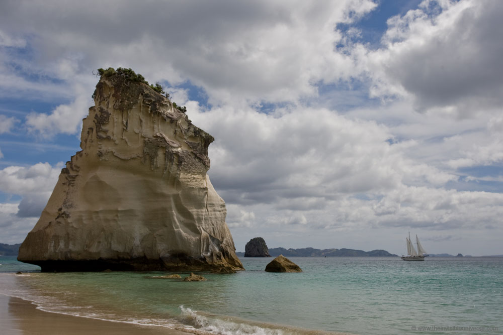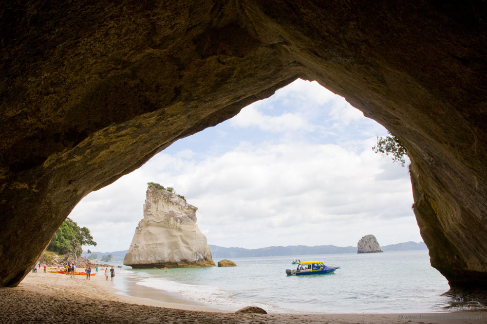 Coromandel bietet viel Natur, enge kurvige Küstenstrassen und einen schönen Strand mit der Felshöhle Cathedral Cove bei Hahai.