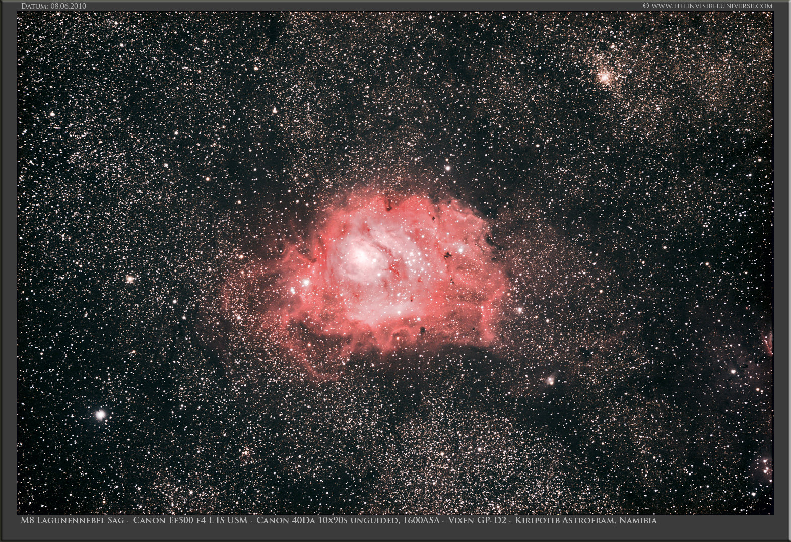 Da ich hauptsächlich für die Naturphotographie ein 500 mm Supterteleobjektiv dabei hatte und deshalb platz- und gewichtsmäßig kein Teleskop mitnehmen konnte, habe ich mit dem Canon EF 500 f4 Teleobjektiv einige Astroaufnahmen gemacht.