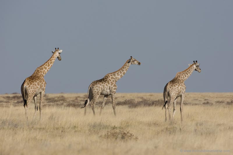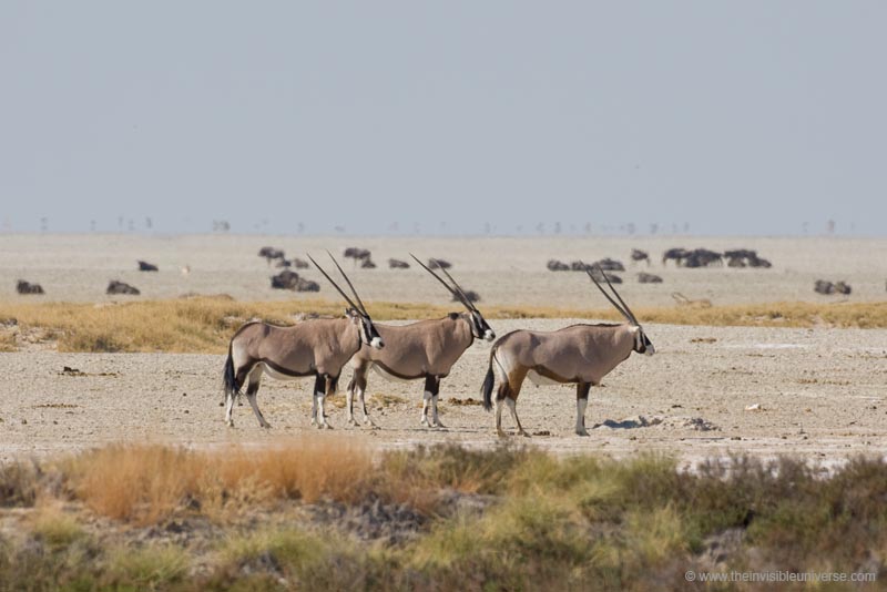 Zebras, Giraffen, Gemsböcke, Schakale, Strausse und die anmutigen Oryx-Antilopen zählen zu den zahlreichen und omnipräsenten Bewohnern des Etosha-Parks.