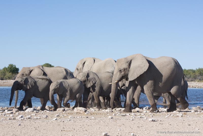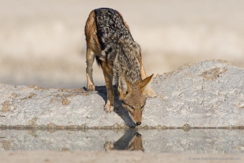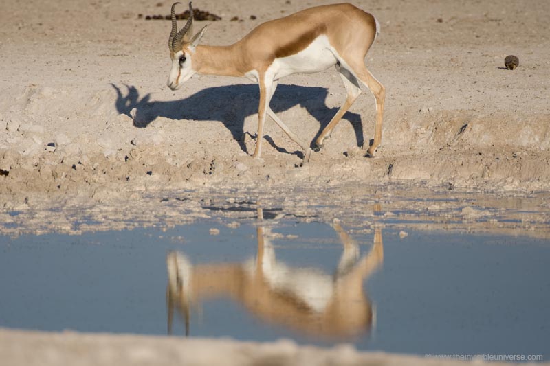 Etosha ist sicherlich eines der Highlights von Namibia. Aus allernächster Nähe kann man aus dem Auto heraus Wildtiere in ihrer natürlichen Umgebung beobachten. Die Fahrt durch den Etosha-Park im eignen Auto (natürlich kann man auch Safaris buchen und sich fahren lassen, was ich als Photograph allerdings nicht bevorzuge) ist zwar anstrengend, da man auf der Strecke das Fahrzeug nicht verlassen darf und sollte (gefährlich), aber an den vielen Wasserlöchern kann man im Südwinter garantiert viele Wildtiere sehen. Als besonders ergbiebig haben sich die Wasserlöcher rund um Namutomi herausgestellt.