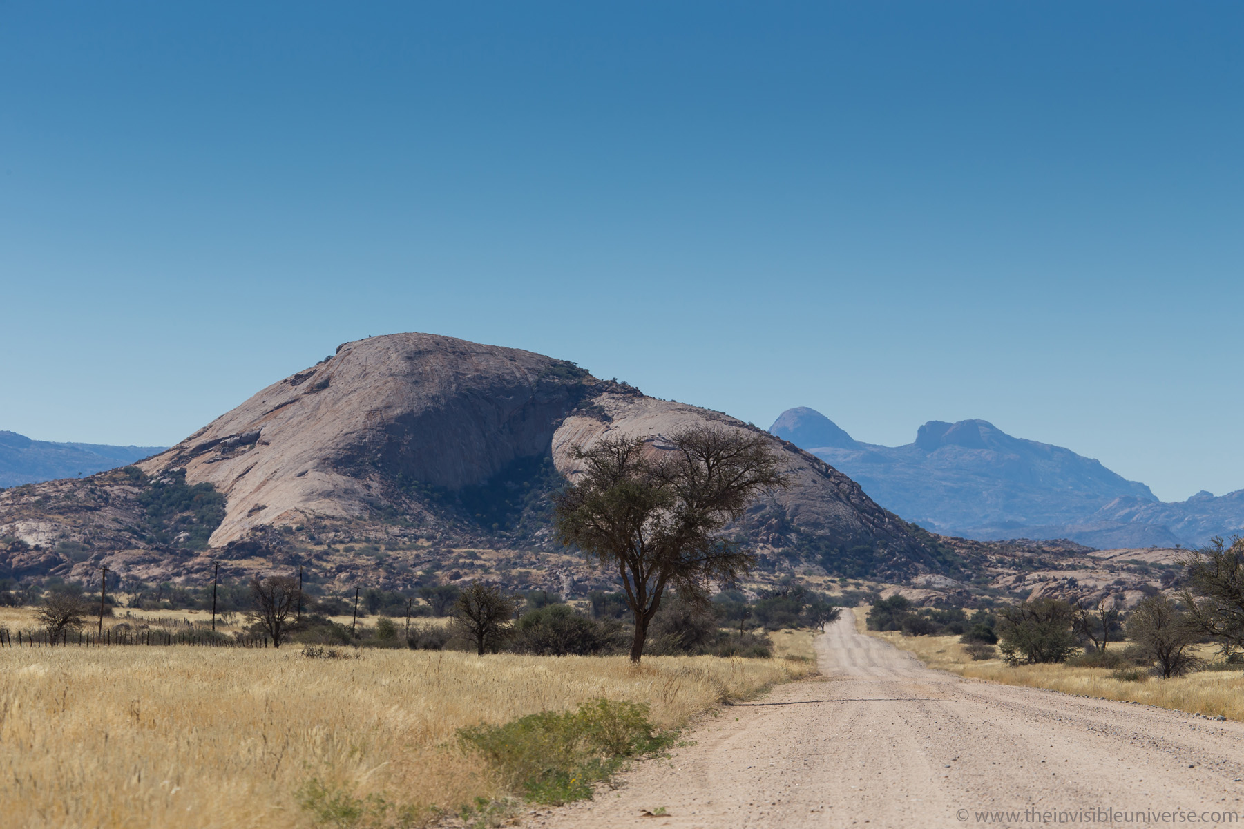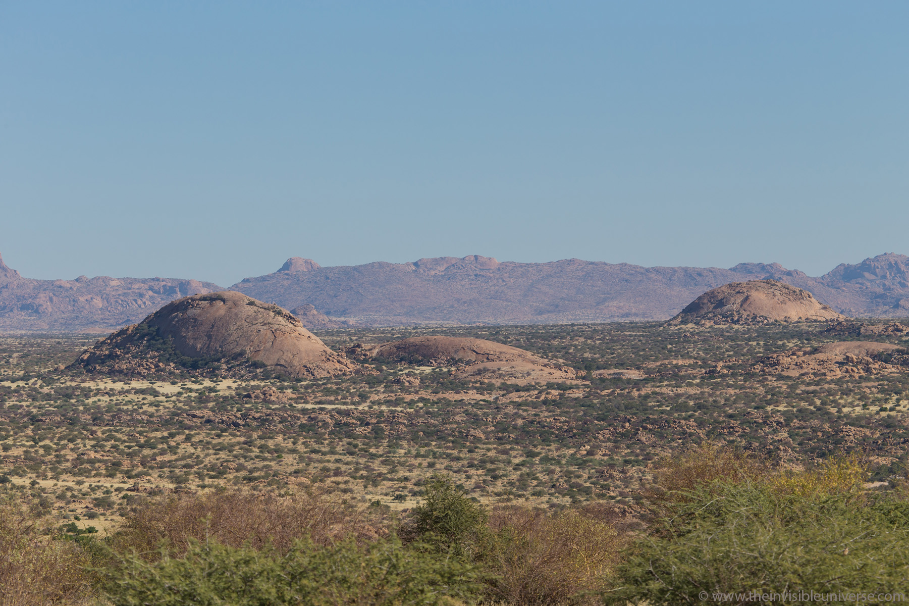 Noch weiter nördlich, die C33 nach Otijwarongo, fährt man durch eine vulkanisch geprägte Landschaft mit alten Granitdomen, die durch Erosionspozesse freigelegt wurden. Immer wieder ergeben sich herrliche Ausblicke auf diese weite Landschaft.