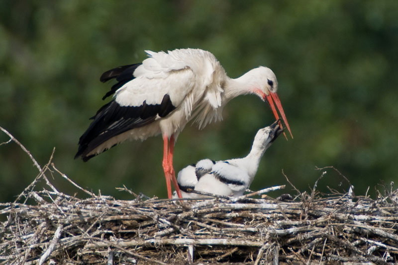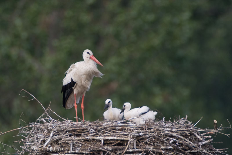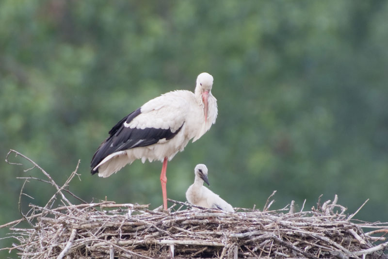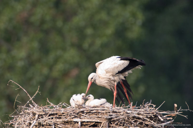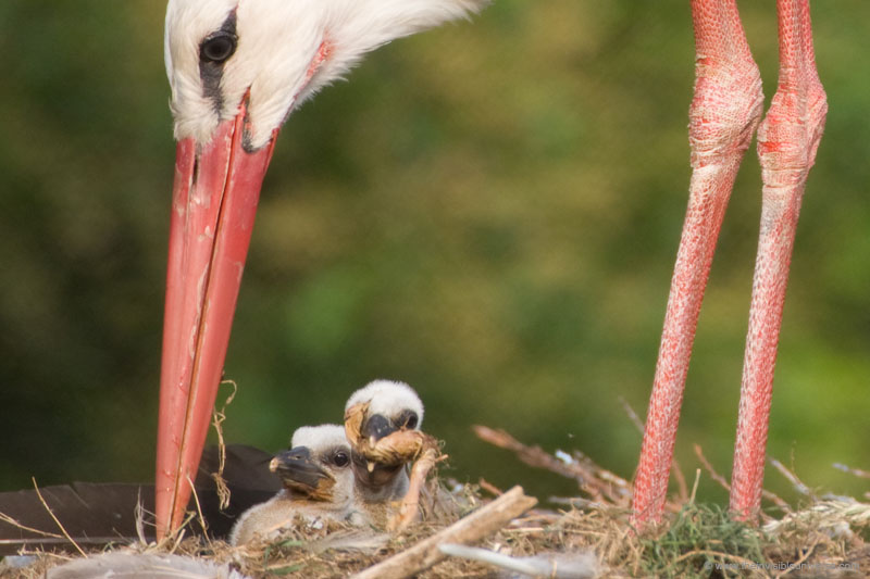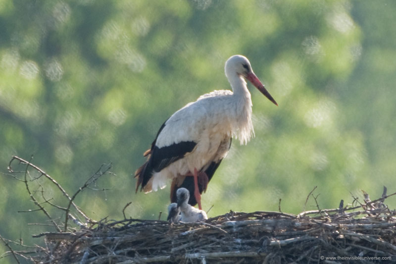Im Mai schlüpften dann zwei Küken, um dann in den nächsten Wochen von den Altstörchen fleissig gefüttert zu werden. Im benachbarten Horst am Pastorat waren sogar drei Küken geschlüpft, leider kaum sichtbar für Besucher.