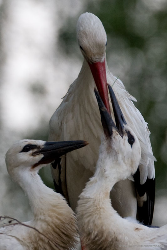 Interessant ist auch ein Storchenhorst auf dem Dach eines kleinen Stalls in dem kleinen Dorf Lippling nahe Delbrück. Hier hat sich ein wildes Storchenpaar direkt auf einem Bauernhof niedergelassen, und zwar in perfekter Fotoentfernung. Gerade mal 10-12 Meter entfernt kann man hier aus aller nächster Nähe den kleinen Nachwuchs beim futtern zusehen.