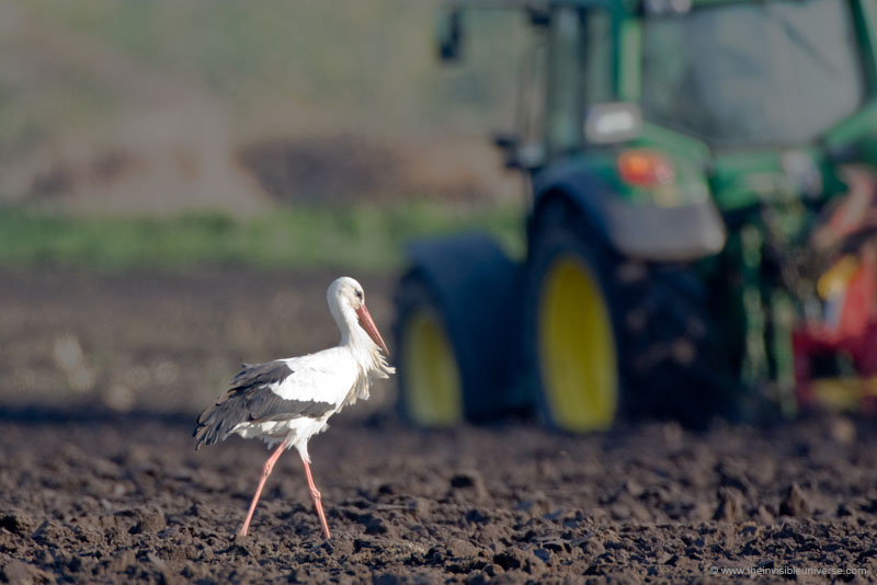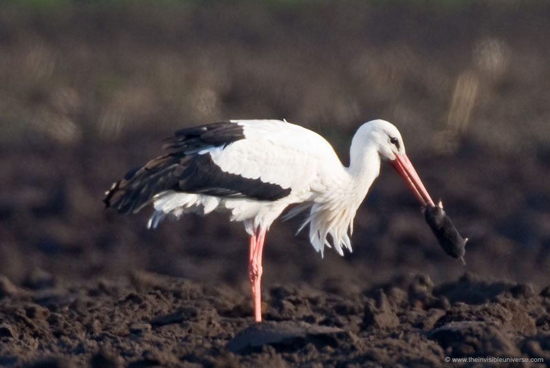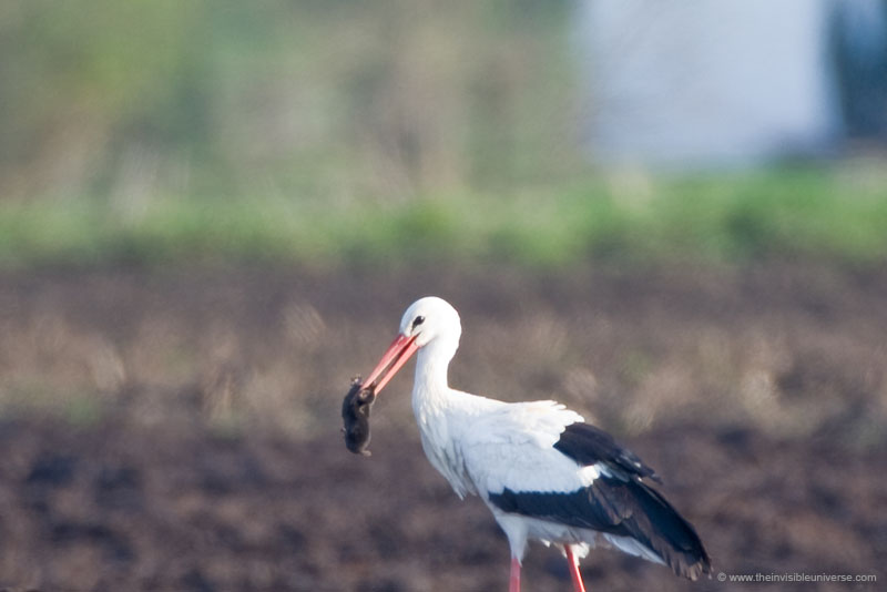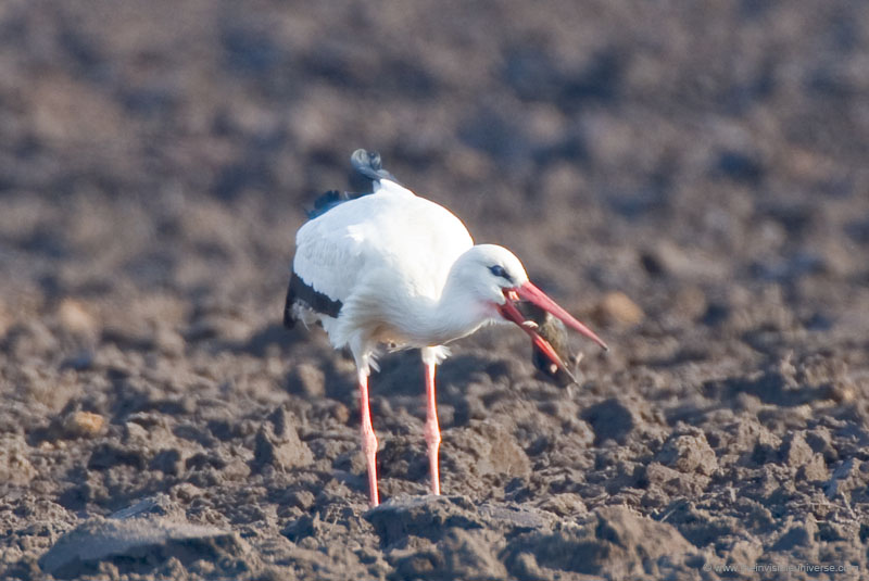 Hier nutz ein Storch das frisch gepflügte Feld aus um einen Maulwurf zu fangen. Erst nach langer Vorbereitung gelingt es ihm das grosse Tier zu verschlucken - in einem Stück versteht sich.