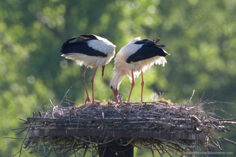 Der Aufzuchtversuch des Storchenpaares an der Klostermersch. Das Storchenpaar hat allerdings die vier Jungen aufgegeben, da nicht genügend Nahrung vorhanden war.