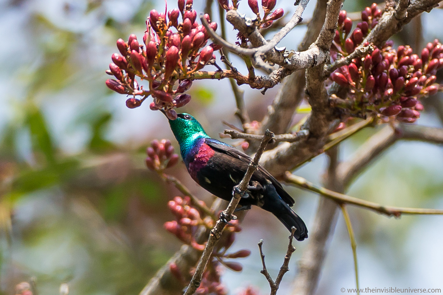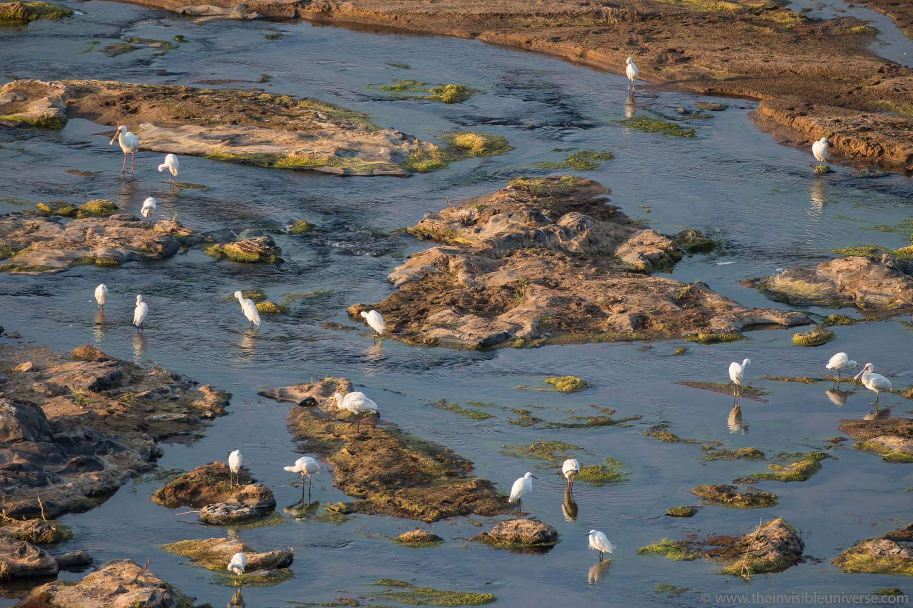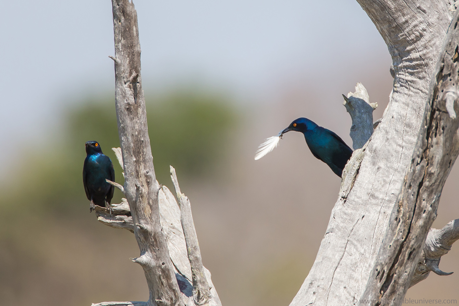 Eine seltene Erscheinung ist der Glattnackenibis. Der Hagedash dagegen gehört auch zu der Familie der Ibise, kommt aber sehr häufig im südlichen Afrika vor und besetzt mit viel Lärm Abends die bevorzugten Schlafbäume. Ein buntes Spektakel bieten die viele Nektarvögel, Glanzstare, Zwerspinte und viele weitere bunte Arten, die man leicht beobachten kann.