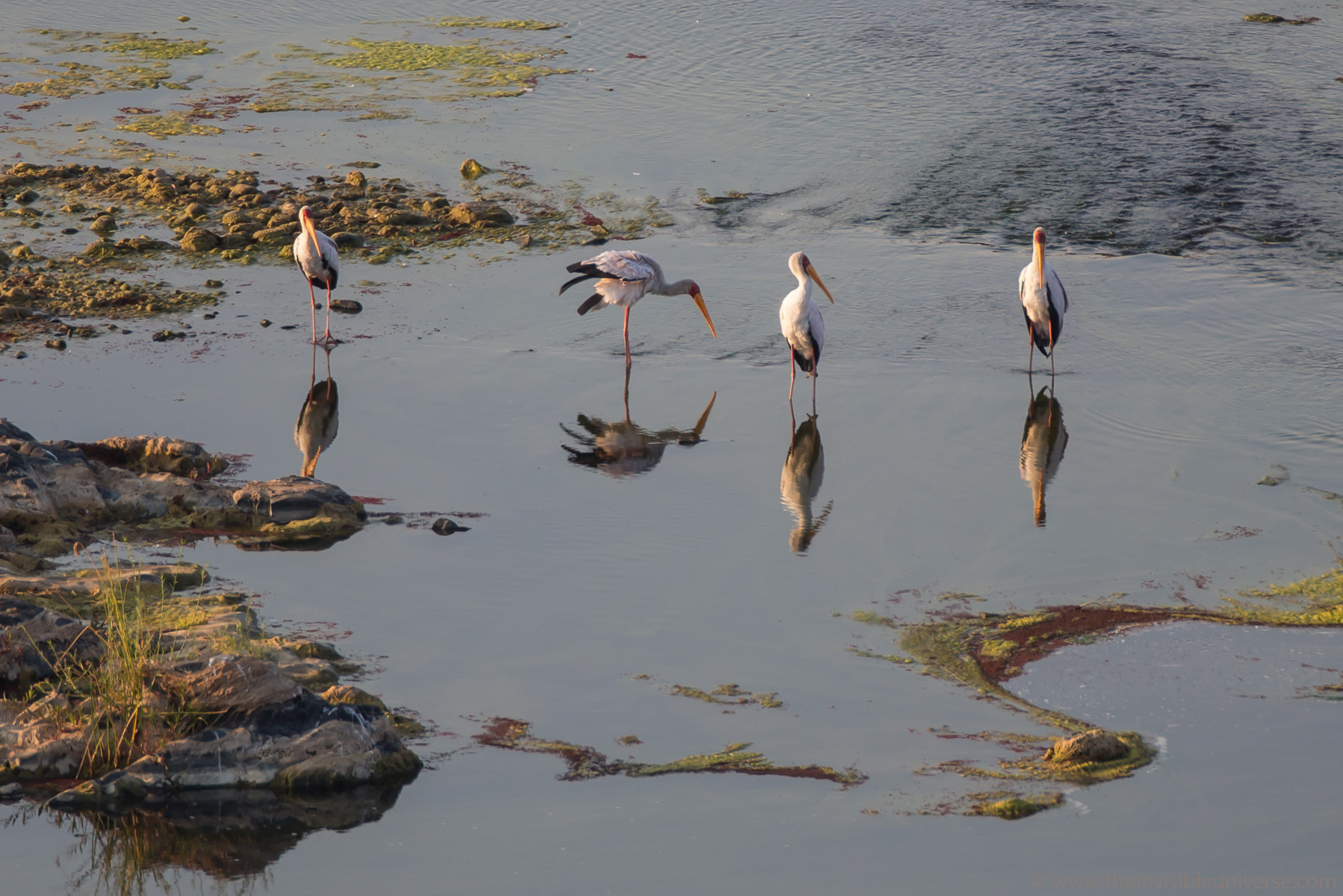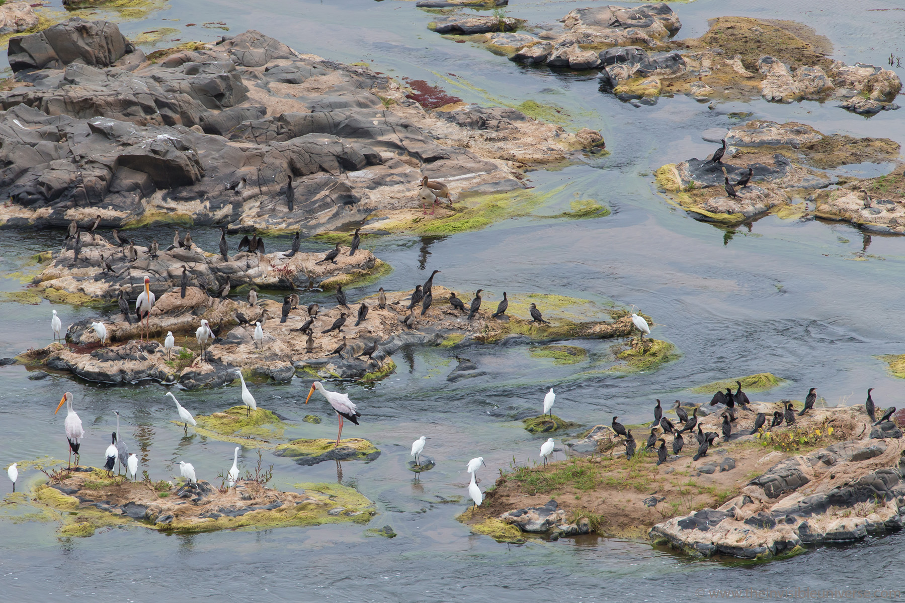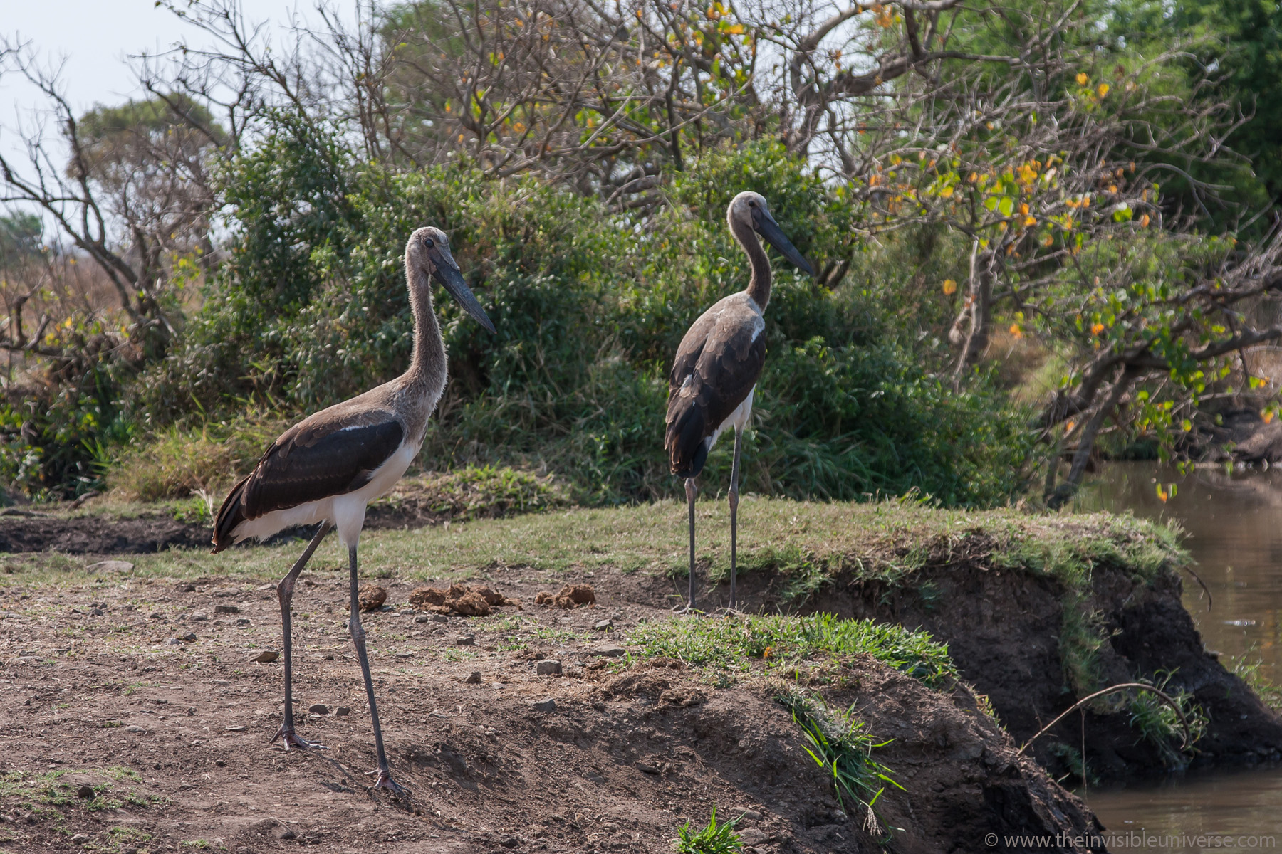 Ich hatte eigentlich erwartet die auch in Deutschland verbreiteten Weißstörche in ihrem Winterquartier zu finden. Möglicherweise war es dazu aber noch zu früh, oder ich war einfach nicht am richtigen Ort gewesen. Dafür gab es aber eine andere Storcharten zu sehen, die nicht minder schön und beeindruckend ist: der Sattelstorch mit seinem auffällig bunten Schnabel und dem gelben Sattel auf dem Schnabelansatz ist für mich der Inbegriff der Vogelwelt im Krüger geworden und gehört zu den Big 6 Birds im Krüger! Fast alle Bilder wurden am Olifants River gemacht. Auch der Nimmersatt und der Marabu Stroch gehören zu der weiter gefassten Familie der Störche. Bei den unteren Bildern habe ich lange gerätselt bis ich in Erfahrung bringen konnte, das es sich um junge Marabus handelt, die noch nicht ihr juveniles Daunenkleid verloren haben. Auf jeden Fall waren diese so gar nicht scheu und saßen bequem auf einer kleinen Brückenüberfahrt einer abgelegenen Schotterpiste im Krügerpark.
