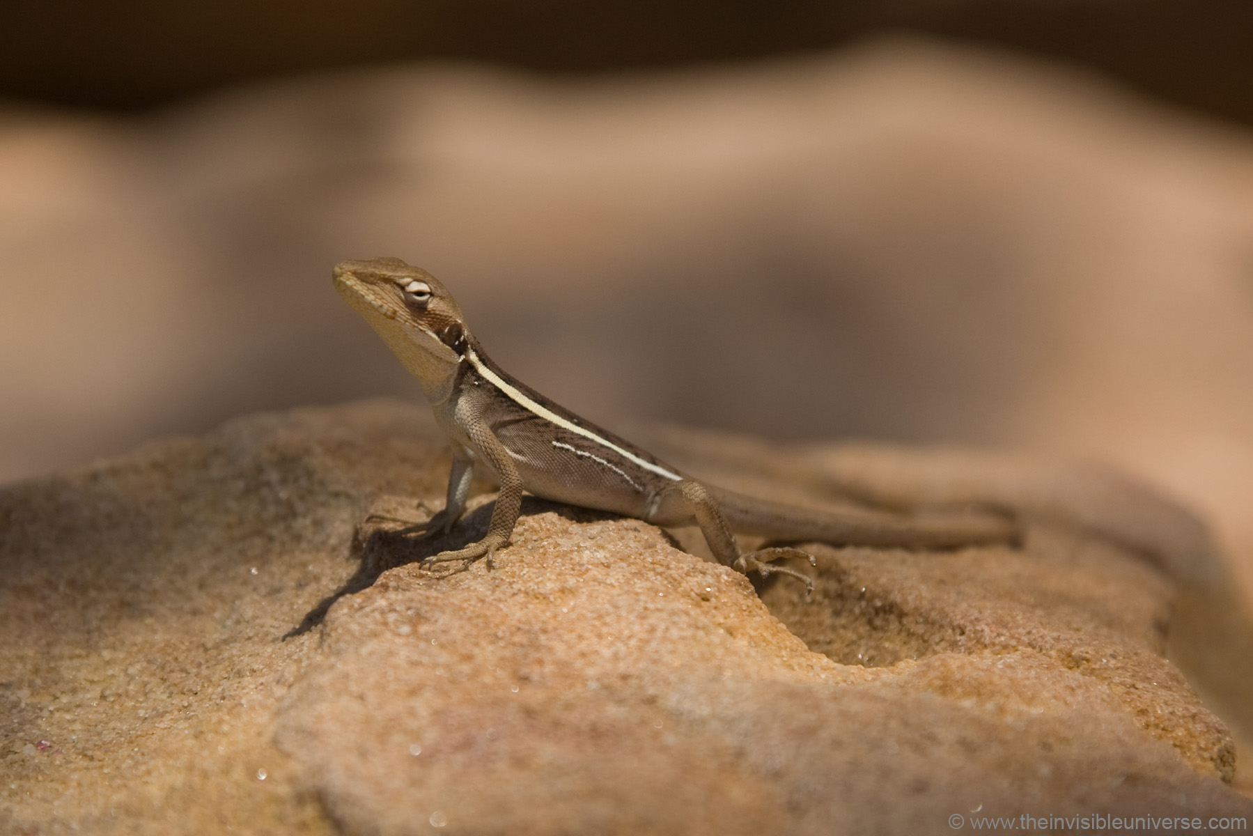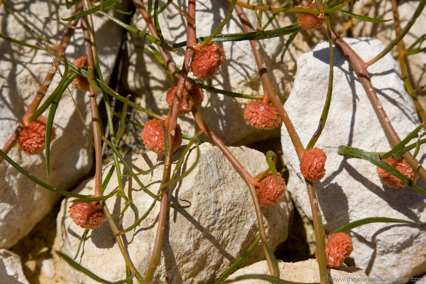 Um in den Cape Rang NP zu gelangen stehen einem von Monkey Mia aus nochmal etliche hundert Kilometer Fahrt bevor, unterbrochen nur von zwei Tankstellen. Draußen 40°C und Myriaden lästiger Fliegen, die in Mund, Nase und Ohren krabbeln. Die Strecke zwischen Carnarvon und Coral Bay ist ein kleines Westaustralisches Outback. Endlose Strassen durch tiefrote Landschaft, trocken und quasi menschenleer. Auf der Cape Range Halbinsel überquert man auch den südlichen Wendekreis, den Tropic of Capricorn auf dem 23,5 südlichen Breitengrad.