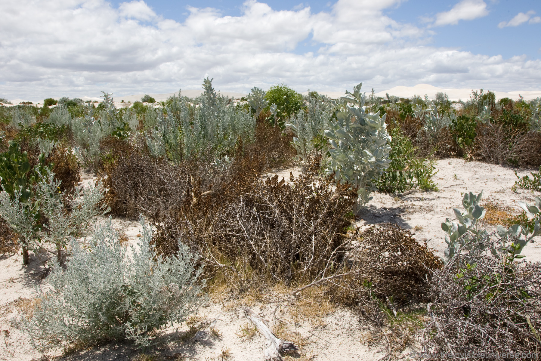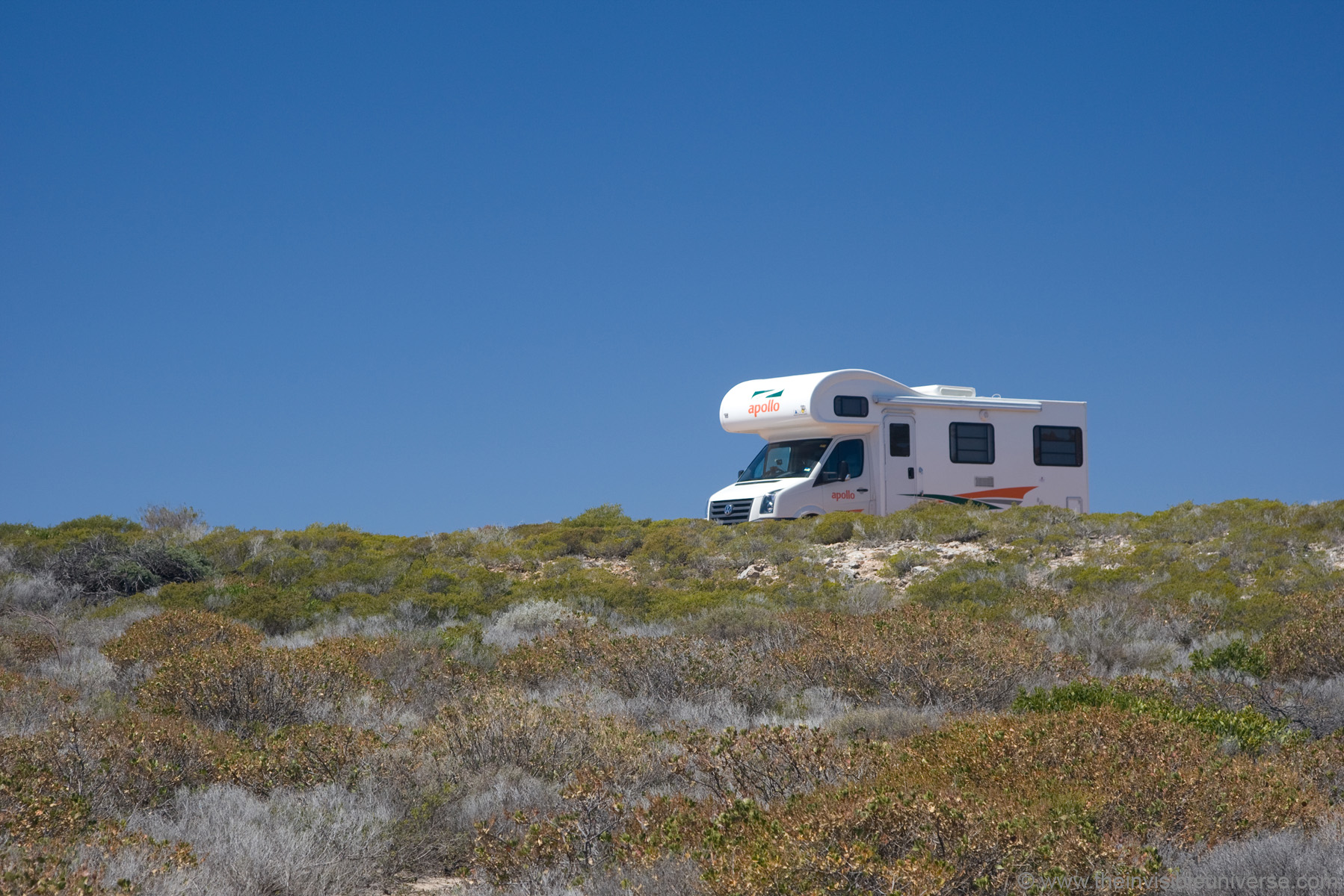 Nach über 350 km anstrengender Fahrt mit dem Wohnmobil durch schier endlose Buschsavanne erreicht man vom Kalbarri NP aus die Shark Bay Halbinsel. Hunderte von Kilometern unbewohnte Wildnis, lange gerade Strassen die erst am Horizont enden. Autofahren als meditative Entspannungsübung.