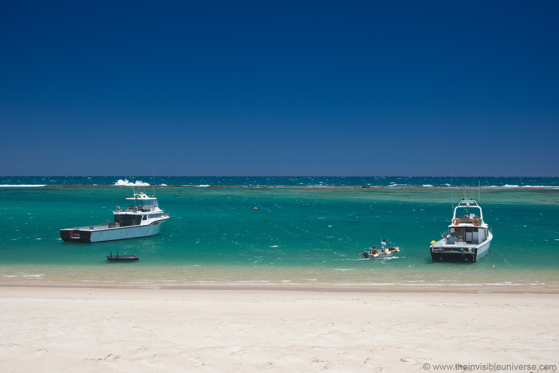 In Coral Bay lohnt sich der Ausflug mit einem Glasbodenboot um die wirklich phantastische Landschaft des Ningaloo Korallenriffes vor diesem Küstenabschnitt zu erleben. Vom Stand aus kann man sogar mit einer geeigneten Schnorchelausrüstung direkt zum Riff schwimmen. Deshalb bietet sich das Ningaloo Riff noch mehr zum Schorcheln an als das Great Barrier Riff an der Australischen Ostküste. Mangels Unterwasserkamera kann aber ich leider nicht mit Photos aufwarten.