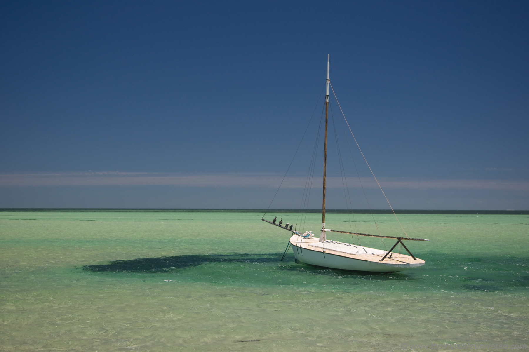 Später erreicht man dann die kleine ruhige Stadt Denham mit traumhaftem Meeresblick. Wenn man die Halbinsel durchquert erreicht man am Ende der Strasse Monkey Mia, ein kleines Dorf, oder eher ein großer Campingplatz. Im Gegensatz zu allen anderen Plätzen, die teilweise vollkommen leer waren, ist Monkey Mia brechend voll. Bekannt geworden ist dieser Platz durch die tägliche Fütterung von wilden Delphinen, die aus dem offenen Meer jeden Morgen an den Strand geschommen kommen. Teilen muss man dieses Anblick mit mehreren Hundert weiteren Touristen. Zur Beruhigung: Nirgendwo sonst in Westaustralien hat man so einen Menschenauflauf.